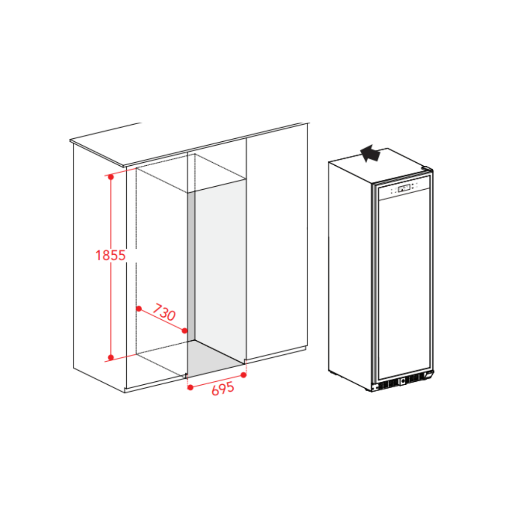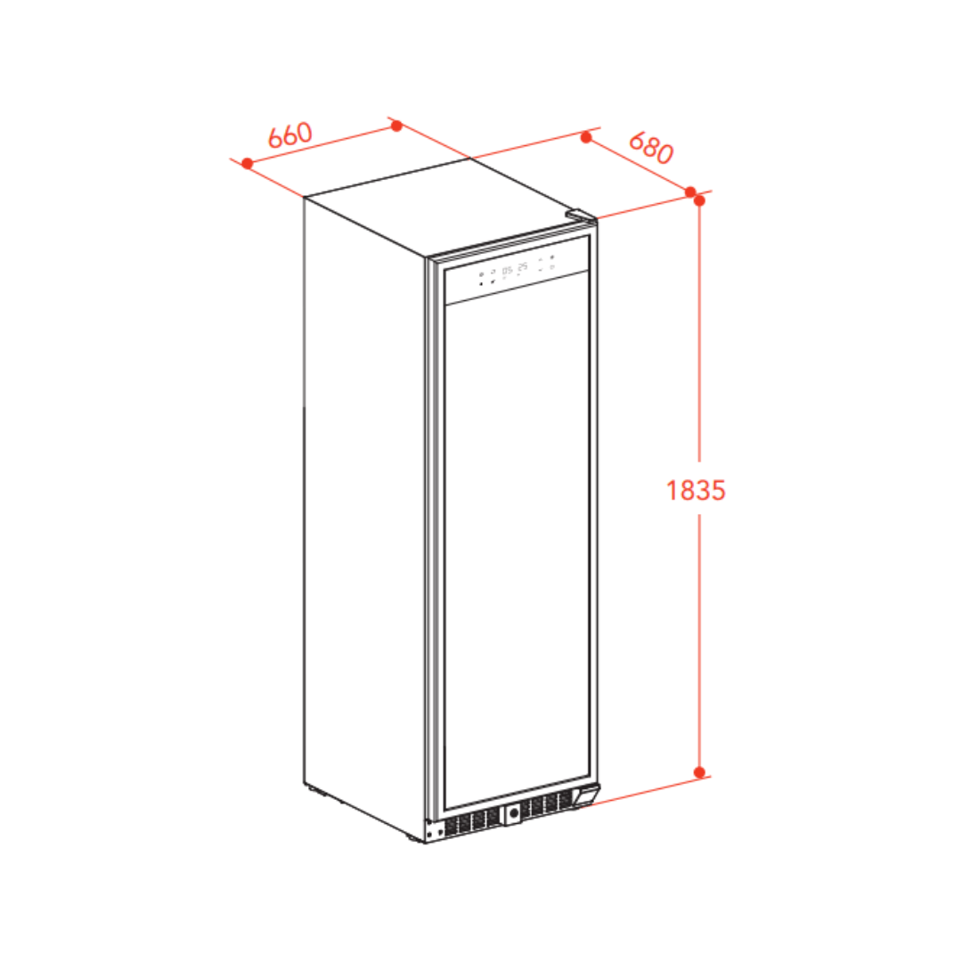 A Adega Vetro 181 Garrafas Dual Zone Built-in da Elettromec é uma obra-prima de luxo e capacidade, projetada para os colecionadores mais exigentes. Com um design imponente e acabamento em vidro preto temperado, ela se torna o ponto focal de qualquer ambiente gourmet sofisticado. Sua capacidade monumental comporta até 181 garrafas (padrão bordalesa), organizadas em 14 prateleiras robustas com acabamento frontal em madeira e corpo em arame emborrachado preto. Para garantir a segurança e a facilidade de acesso a essa vasta coleção, todas as prateleiras possuem corrediças 100% telescópicas, permitindo o deslizamento suave e total, suportando o peso das garrafas com estabilidade absoluta.