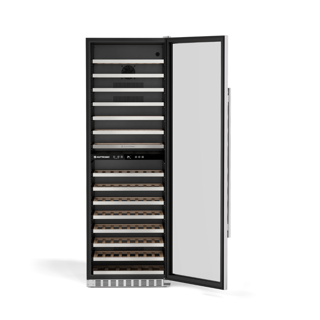 A Adega Elettromec Dual Zone Built-In 134 Garrafas é a solução definitiva de alto padrão para colecionadores, oferecendo a máxima capacidade e tecnologia para conservar grandes acervos com performance inigualável. Projetada para ser integrada perfeitamente à sua cozinha planejada de luxo ou área gourmet, esta adega combina segurança, durabilidade e o legado de excelência da Elettromec.