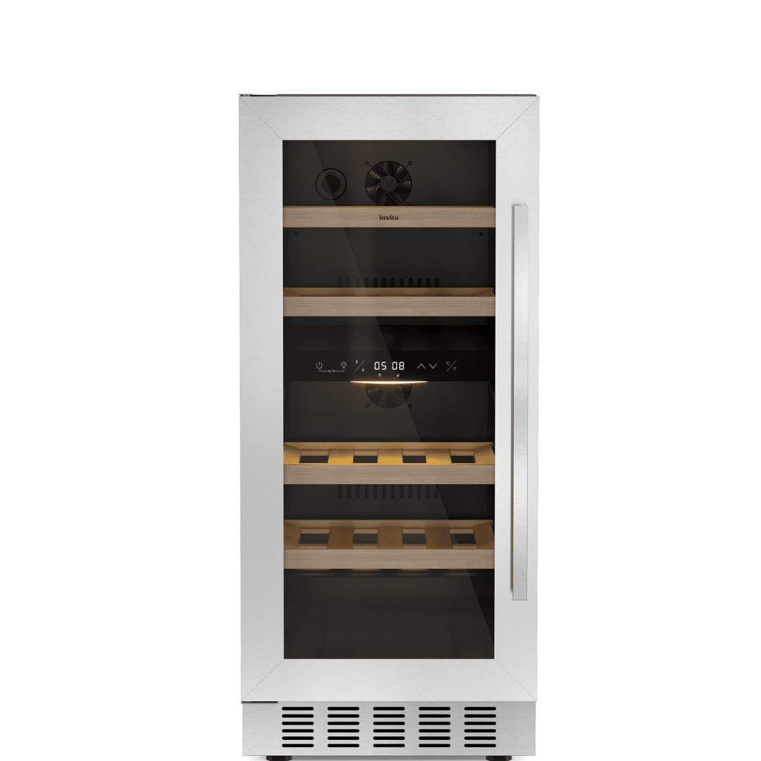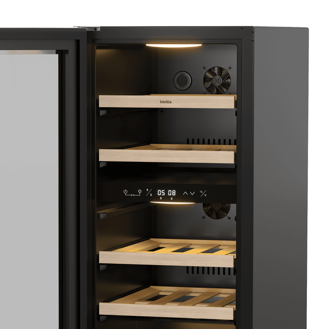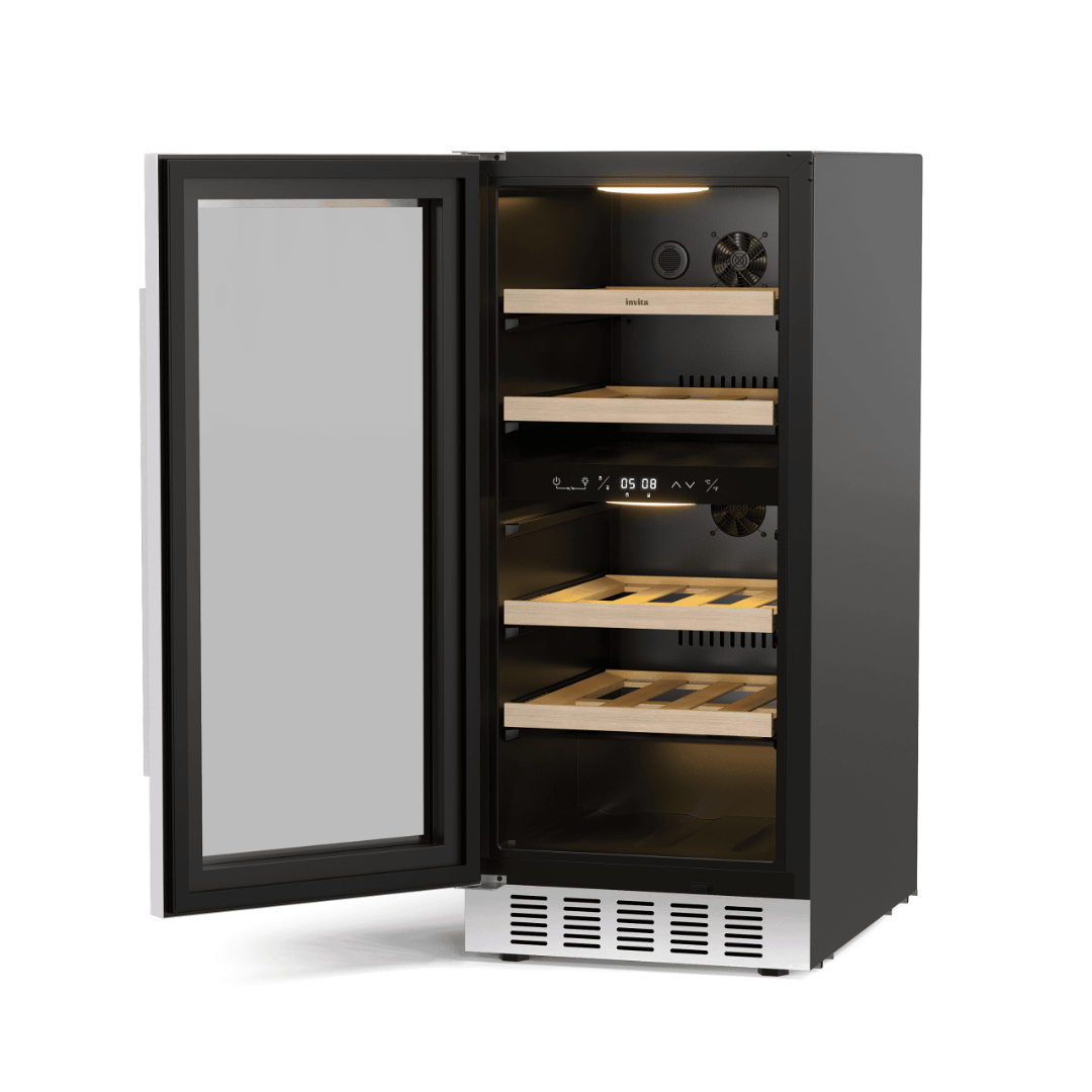 A Adega Invita Inox 26 Garrafas Dual Zone é a materialização do luxo. Projetada especificamente para instalação built-in, ela soluciona a necessidade de integração total ao projeto de móveis planejados, dispensando espaços laterais de respiro graças à sua ventilação frontal. Com o sistema Dual Zone, você tem dois compartimentos com controles independentes, permitindo armazenar desde espumantes a 5 °C até tintos robustos a 22 °C. É um investimento duradouro equipado com Compressor Inverter, que garante menor ruído, baixa vibração e máxima estabilidade térmica para preservar cada garrafa.