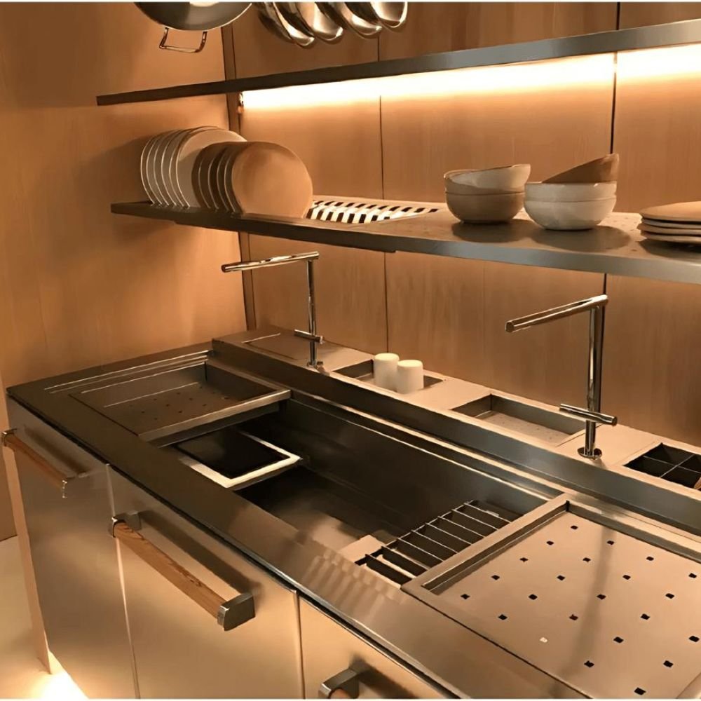 Material Premium em Aço Inox 304 Escovado: Alta resistência à corrosão e durabilidade prolongada, com acabamento elegante que se integra a cozinhas modernas e profissionais;