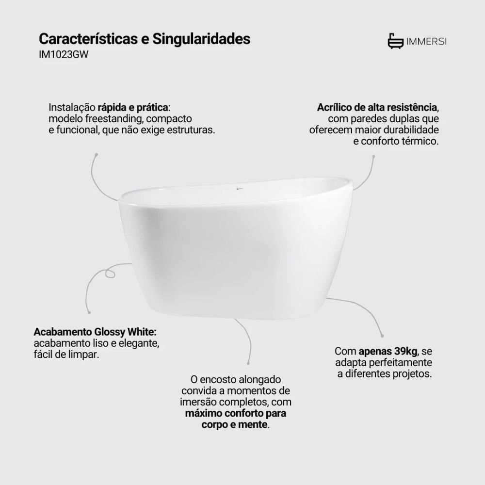 Construída com matéria-prima acrílica de alta qualidade, a banheira assegura alta resistência e durabilidade no uso diário. O fabricante reforça a confiança no produto ao oferecer uma Garantia de 10 Anos Immersi, protegendo seu investimento e garantindo anos de tranquilidade e bem-estar.