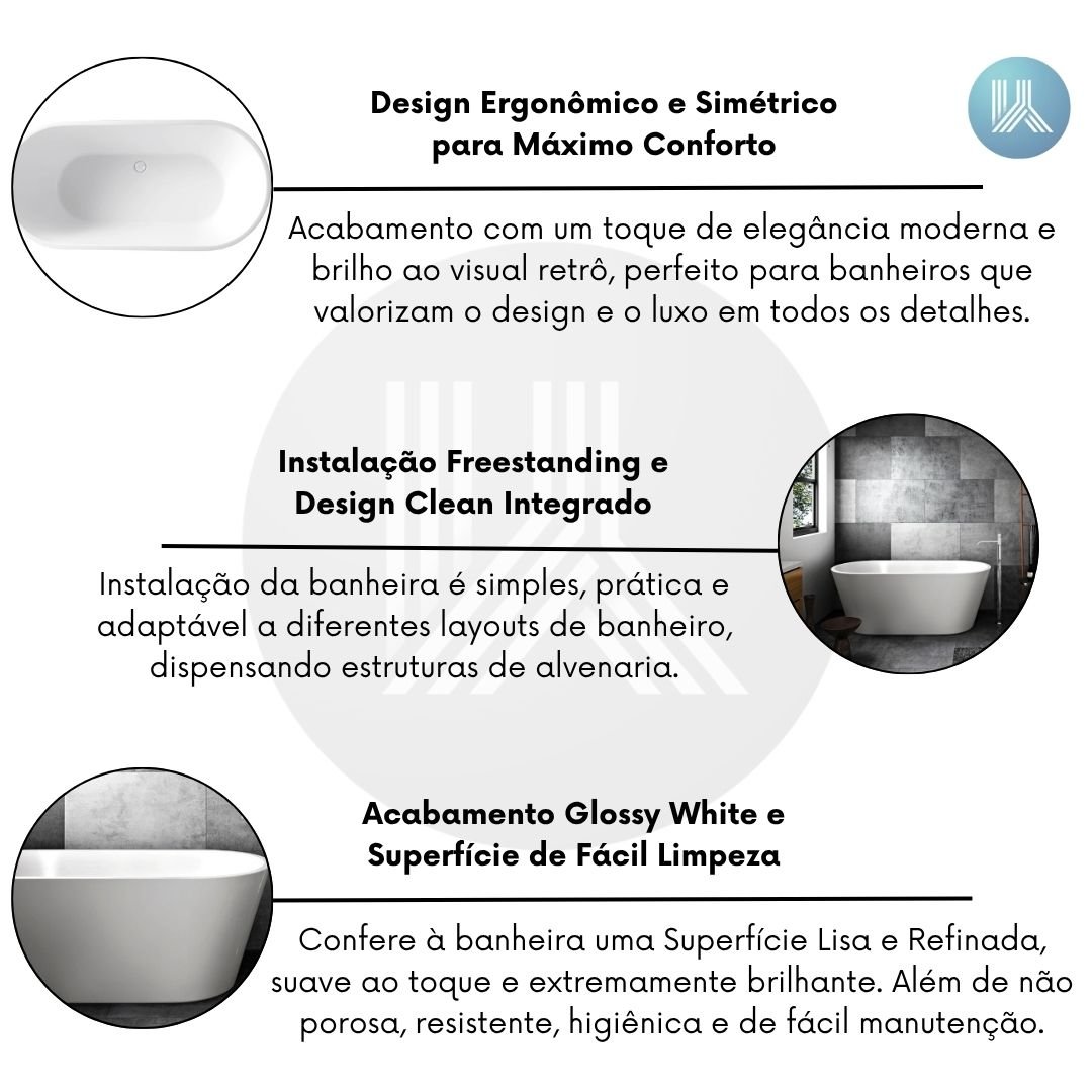 O acabamento Glossy White confere à banheira uma Superfície Lisa e Refinada, suave ao toque e extremamente brilhante. Esta característica de Matéria-Prima Acrílica não porosa e resistente ao desgaste torna a peça altamente higiênica e de fácil manutenção, assegurando que o brilho uniforme e a beleza moderna do ambiente sejam preservados.