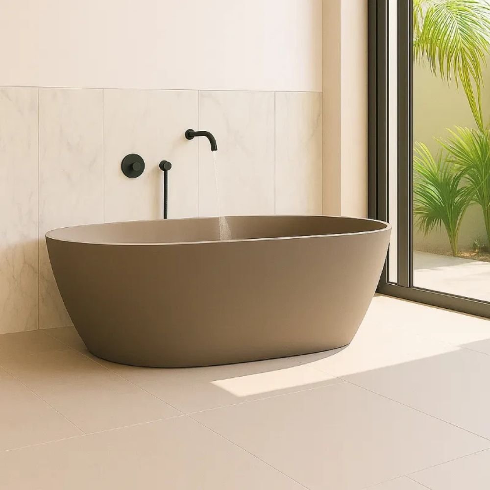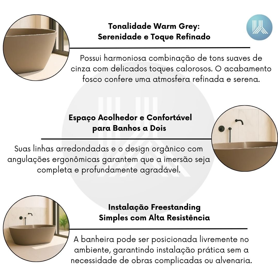 A tonalidade Warm Grey possui uma harmoniosa combinação de tons suaves de cinza com delicados toques calorosos. O acabamento fosco confere à banheira uma atmosfera refinada e serena. Essa cor se adapta harmoniosamente a diversos estilos de banheiro, realçando a sincronia entre o design e a tranquilidade, criando um ambiente de bem-estar.