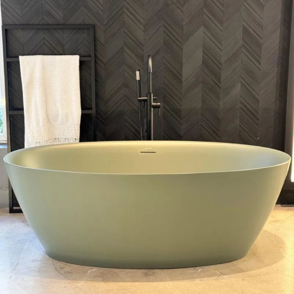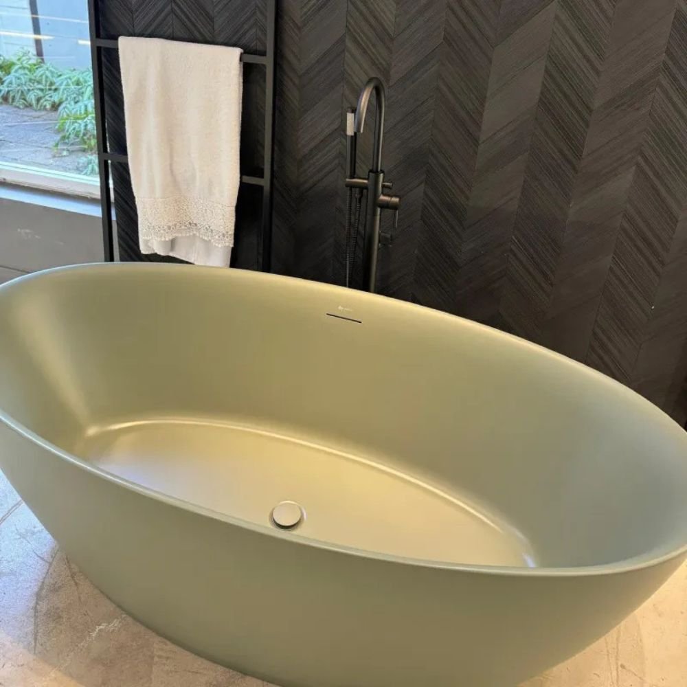 O acabamento Fresh Green fosco se destaca por sua nuance de verde exuberante, que confere uma conexão vibrante com a natureza ao ambiente. Incorporar essa tonalidade no banheiro contribui positivamente para a saúde, promovendo uma sensação de equilíbrio e serenidade, elevando a sua experiência de banho para um momento natural e relaxante.