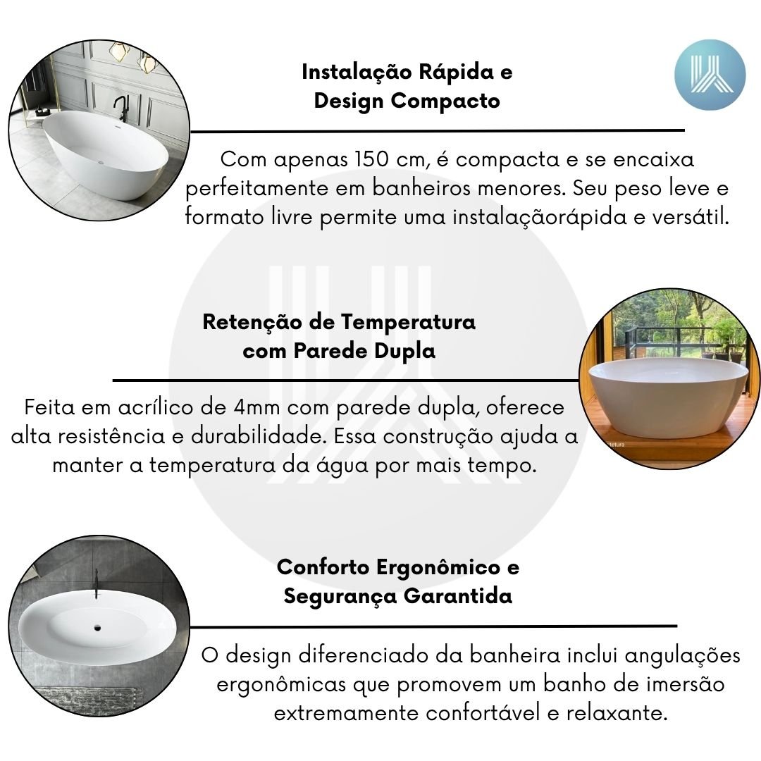 Feita em acrílico de 4 mm com parede dupla, esta banheira oferece alta resistência e durabilidade. Mais importante, essa construção técnica ajuda a manter a temperatura da água por mais tempo, garantindo que seu banho dure mais e permaneça quente, maximizando o relaxamento e o conforto.