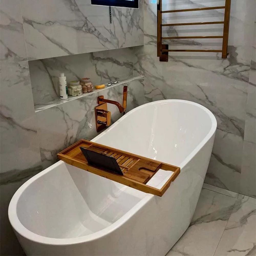 As curvas e o design moderno da banheira foram pensados para oferecer apoio ao corpo e conforto, tornando a experiência de imersão mais agradável. Sua estrutura em matéria-prima acrílica e seu formato auxiliam a manter a temperatura da água por mais tempo, garantindo banhos relaxantes prolongados.