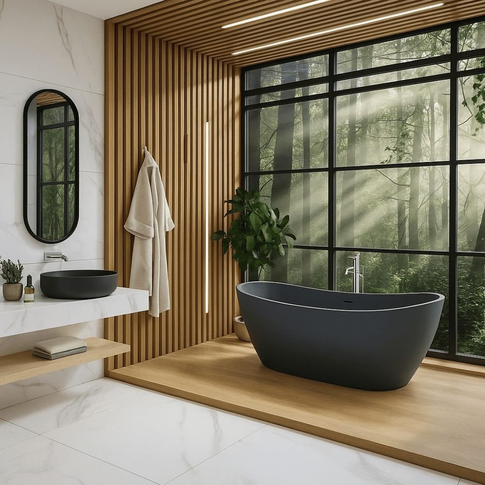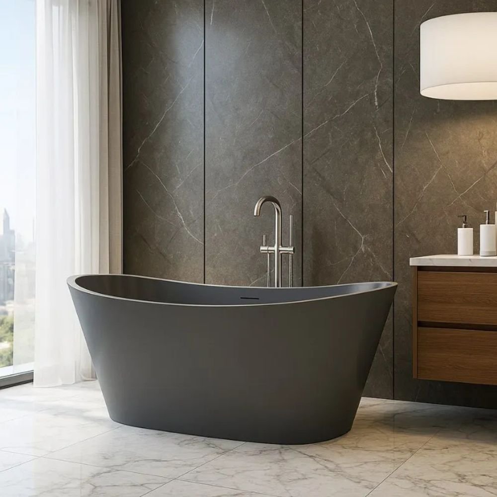 Por ser uma banheira freestanding (autônoma) e ter apenas 45 kg, a instalação é rápida, sem necessidade de grandes reformas ou alvenaria. Seu formato proporciona flexibilidade no layout do espaço, adaptando-se a diferentes estilos de projeto sem complicações, além de contar com a segurança de 10 anos de garantia.