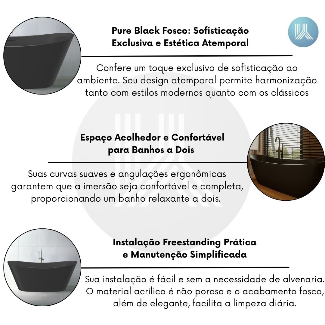 A banheira Porto Belo Pure Black é a escolha ideal para quem busca relaxamento com sofisticação e funcionalidade. Com um design elegante e curvas suaves, ela se adapta a diversos estilos de projeto, tornando-se um elemento de destaque em qualquer ambiente de banho. Com 170 cm de comprimento e pesando 45 kg, essa banheira freestanding é prática tanto na instalação quanto na manutenção. O acabamento Pure Black fosco combina durabilidade e fácil limpeza, garantindo uma peça impecável por anos. Perfeita para momentos de solitude ou relaxamento a dois, essa banheira é um convite ao conforto.