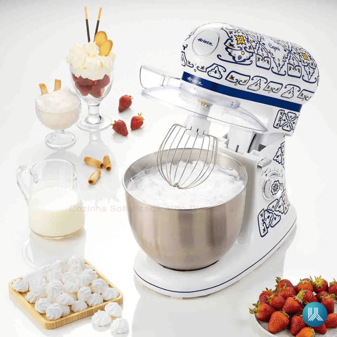 A Batedeira Planetária Ariete Capri transforma sua cozinha em um autêntico refúgio gourmet inspirado no charme vibrante do resort de Capri. Com um motor potente de 600W e sistema de movimento planetário, ela soluciona a necessidade de misturas homogêneas e sovas perfeitas, substituindo o cansativo trabalho manual. Sua tigela em aço inoxidável de 5,5 litros oferece a capacidade ideal para processar grandes quantidades de ingredientes, desde pães e pizzas até bolos estruturados. É um investimento duradouro que combina a funcionalidade de última geração com uma estética artística, garantindo performance profissional com a elegância das cerâmicas majólicas italianas.