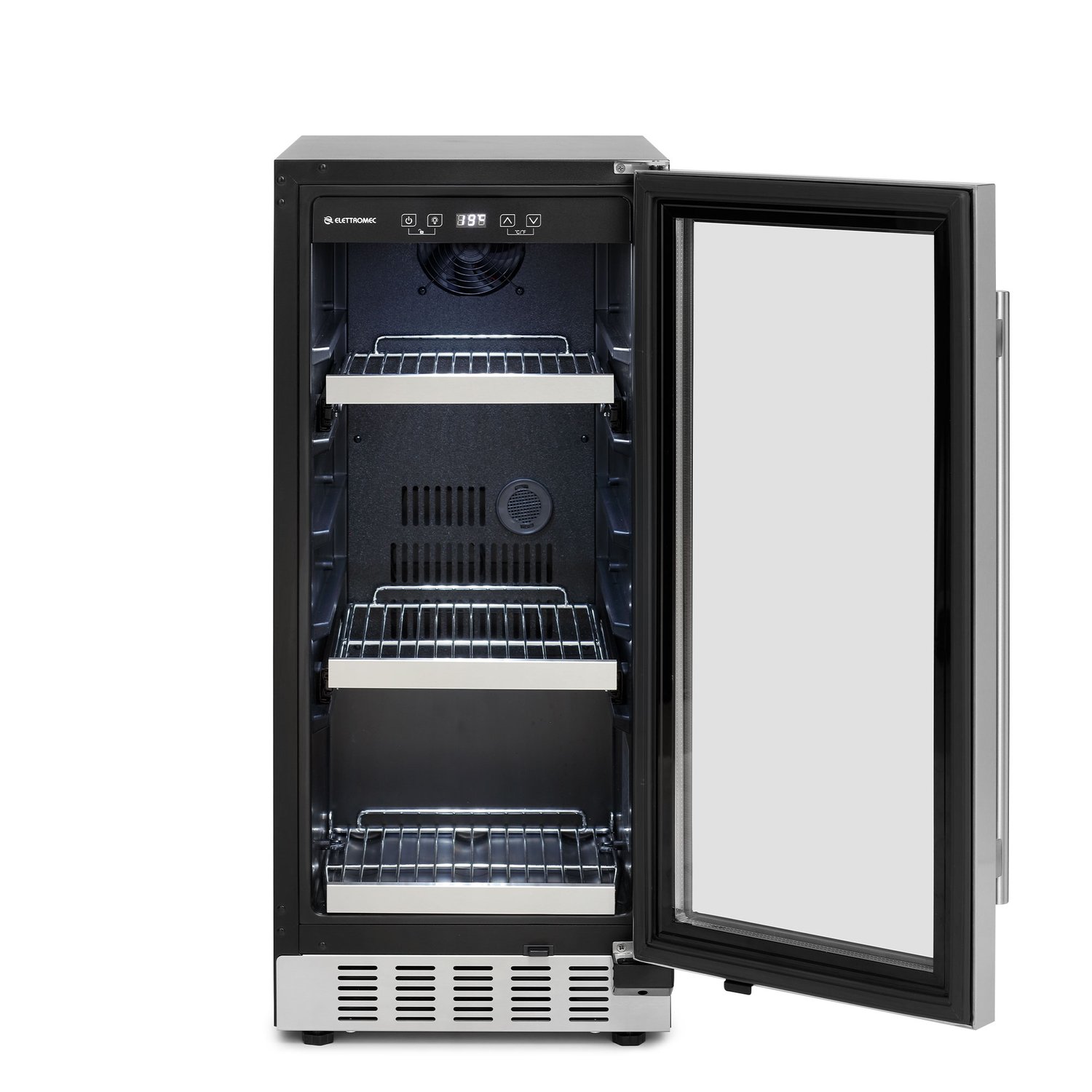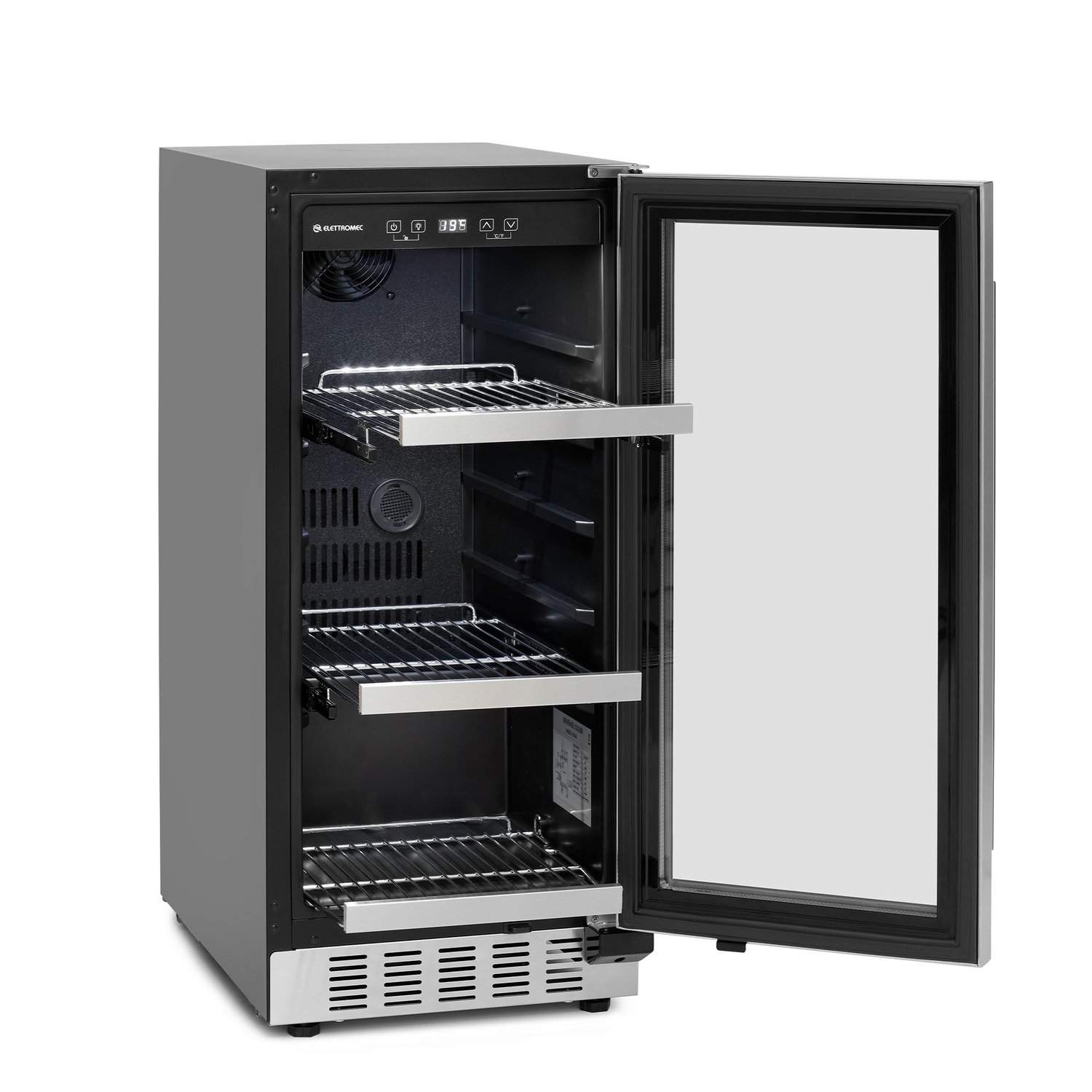 Armazena até 88 latas no seu interior nas temperaturas entre -5 ° C e 5 °C, além de contar com 3 prateleiras em inox com corrediças telescópicas.