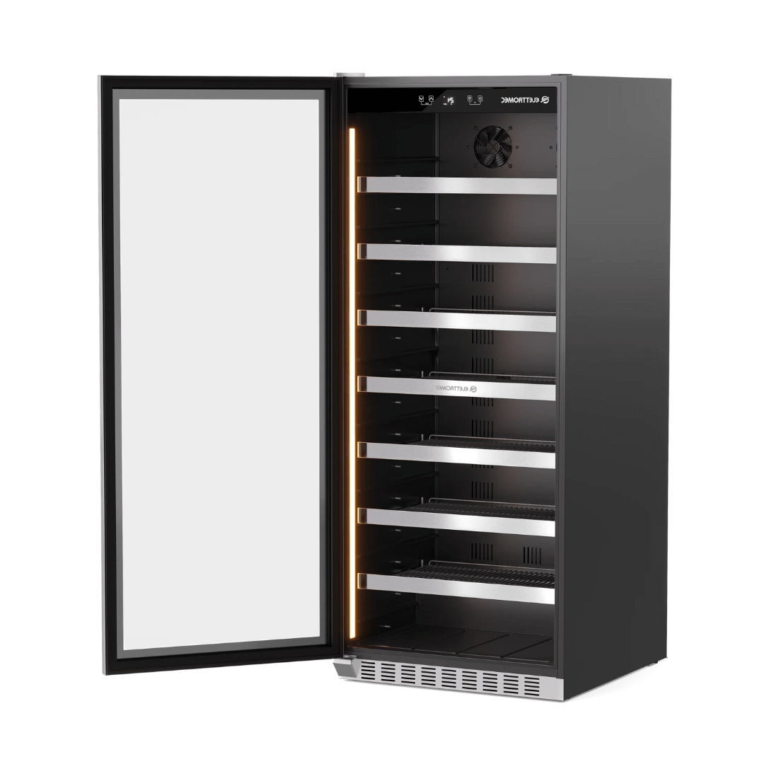 Conectividade e Conforto Remoto: O comando touch e a conectividade via aplicativo Elettromec Connect são diferenciais de luxo que permitem o controle total da adega remotamente, com a segurança do Cut Off Memory.