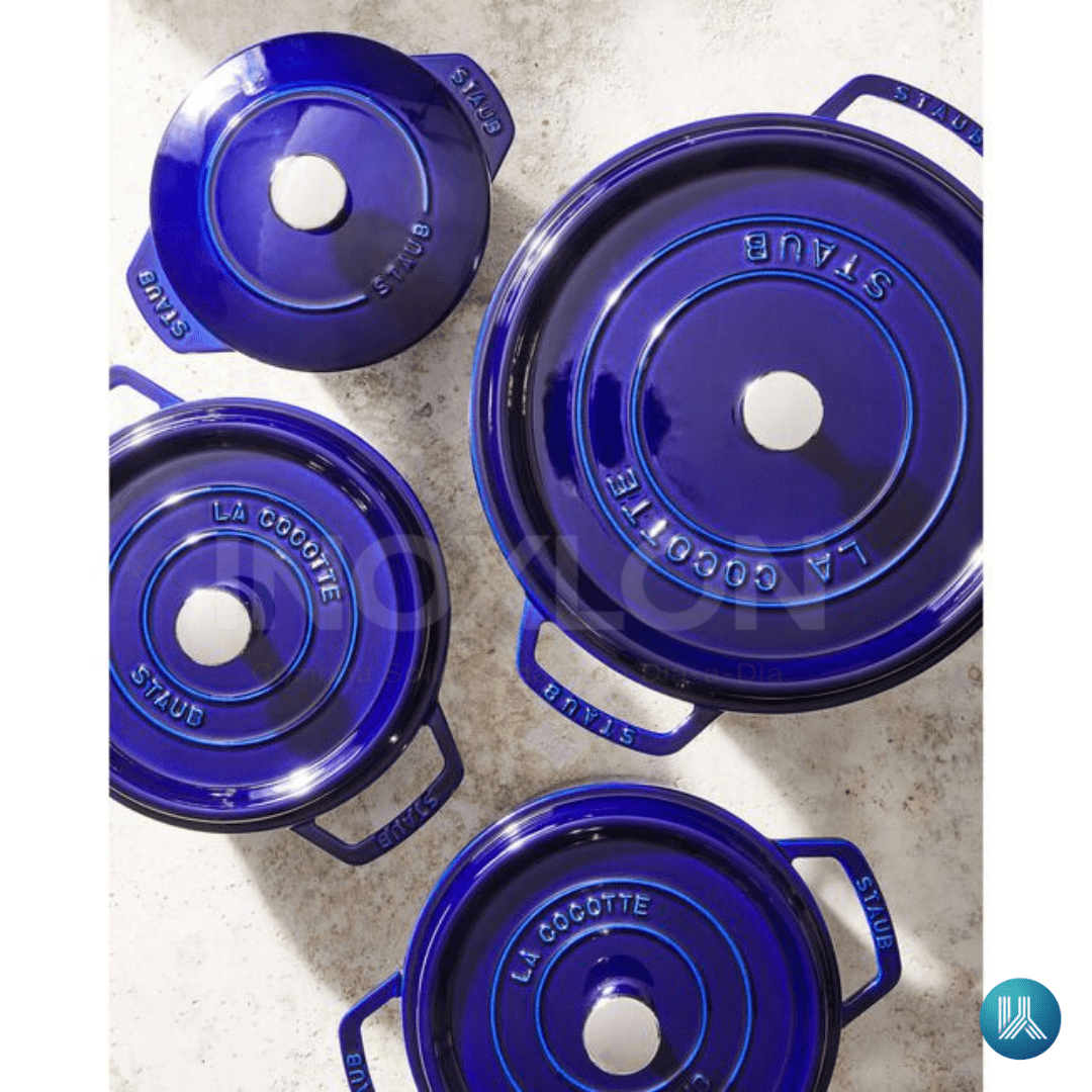 A Caçarola Redonda STAUB de 22 cm na cor Azul Marinho é a peça que define o luxo e a excelência no cozimento lento premium. Feita na França, esta cocotte é a escolha dos melhores chefs do mundo, e seu requintado acabamento a torna um investimento duradouro em legado de excelência para sua cozinha de alto padrão.