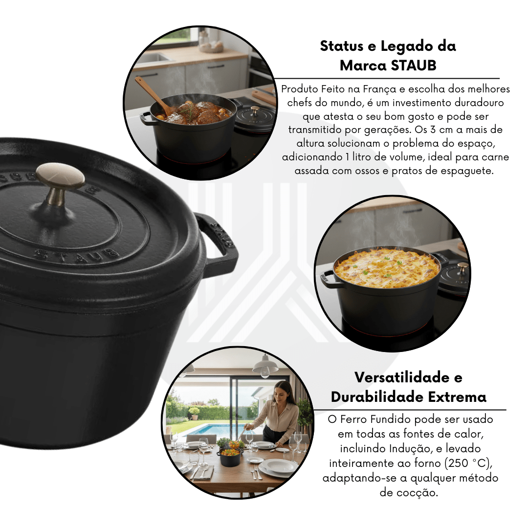 Status e Legado da Marca STAUB: Produto Feito na França e escolha dos Chefs, é um investimento duradouro que atesta o seu bom gosto e eleva o status da sua cozinha gourmet.