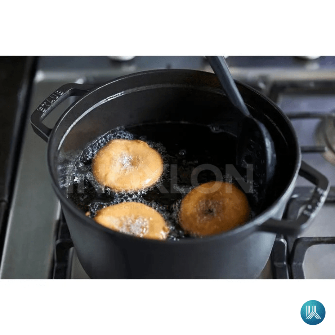Dicas de Cuidados e Manutenção: As peças de Ferro Fundido Esmaltado STAUB são conhecidas por sua durabilidade extrema. Lave sempre à utilizando água morna e detergente neutro logo após o uso. É crucial evitar terminantemente o uso de produtos abrasivos, alvejantes, saponáceos ou palha de aço, pois estes danificam o esmalte. Seque completamente antes de guardar para garantir que este patrimônio culinário mantenha sua estética e valor por muitas gerações.