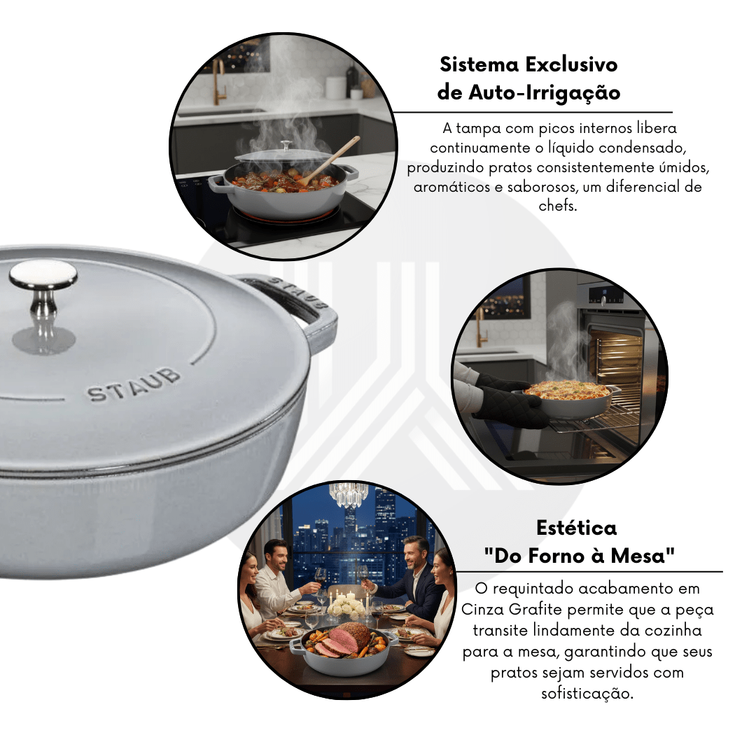 Status e Legado da Marca STAUB: Escolha dos melhores chefs do mundo, é um investimento duradouro e sustentável que eleva o status da sua cozinha, sendo fabricada sob rigorosos padrões franceses.