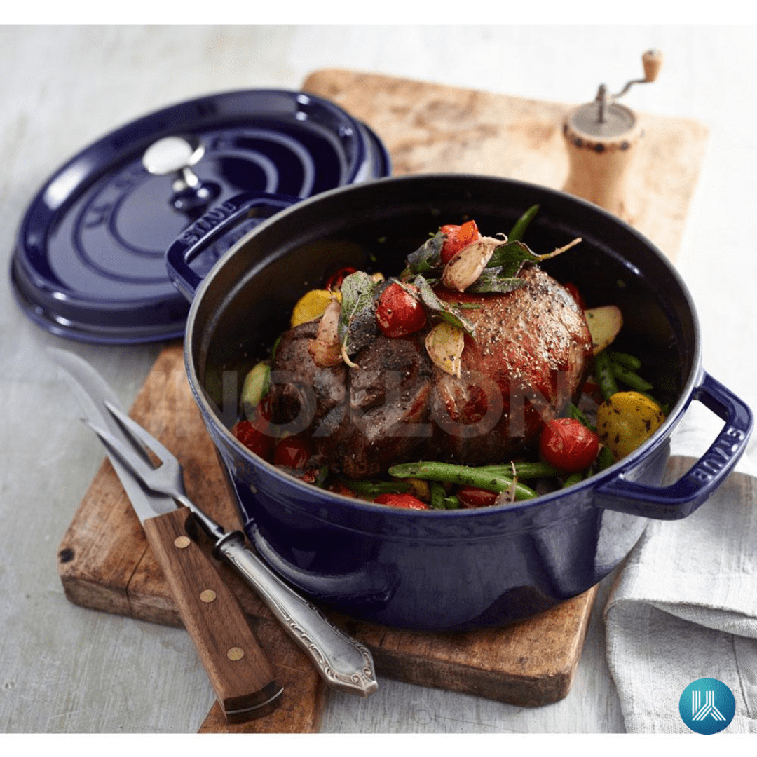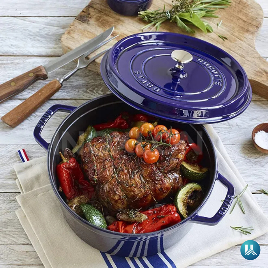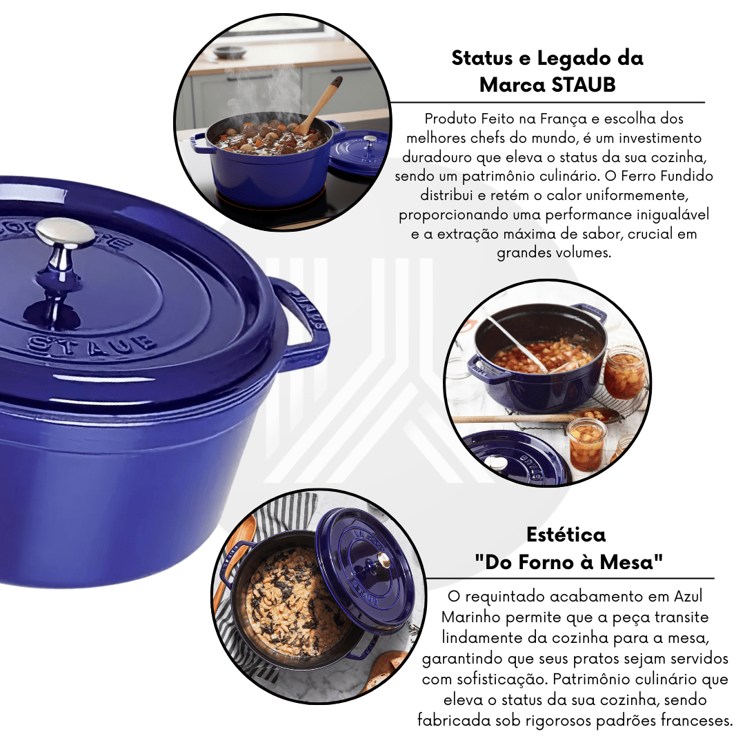 A Caçarola Redonda STAUB de 30 cm é a peça que define o luxo e a excelência no cozimento lento premium. Feita na França, esta caçarola é a escolha dos melhores chefs do mundo, e o seu requintado acabamento em Azul Marinho a torna um investimento duradouro em legado de excelência para sua cozinha de alto padrão.