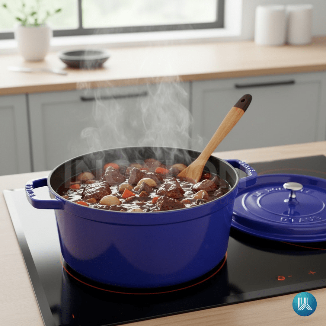 Cozimento Lento e Maciez Perfeita: Insuperável na retenção de calor, esta cocotte soluciona o problema da perda de umidade, garantindo o cozimento uniforme para carnes e ensopados de maciez perfeita.