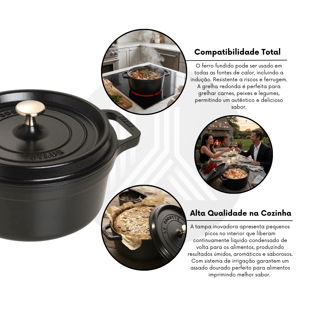 Compatibilidade Universal: Funciona perfeitamente em cooktops de indução, gás e elétricos, oferecendo flexibilidade total na cozinha.