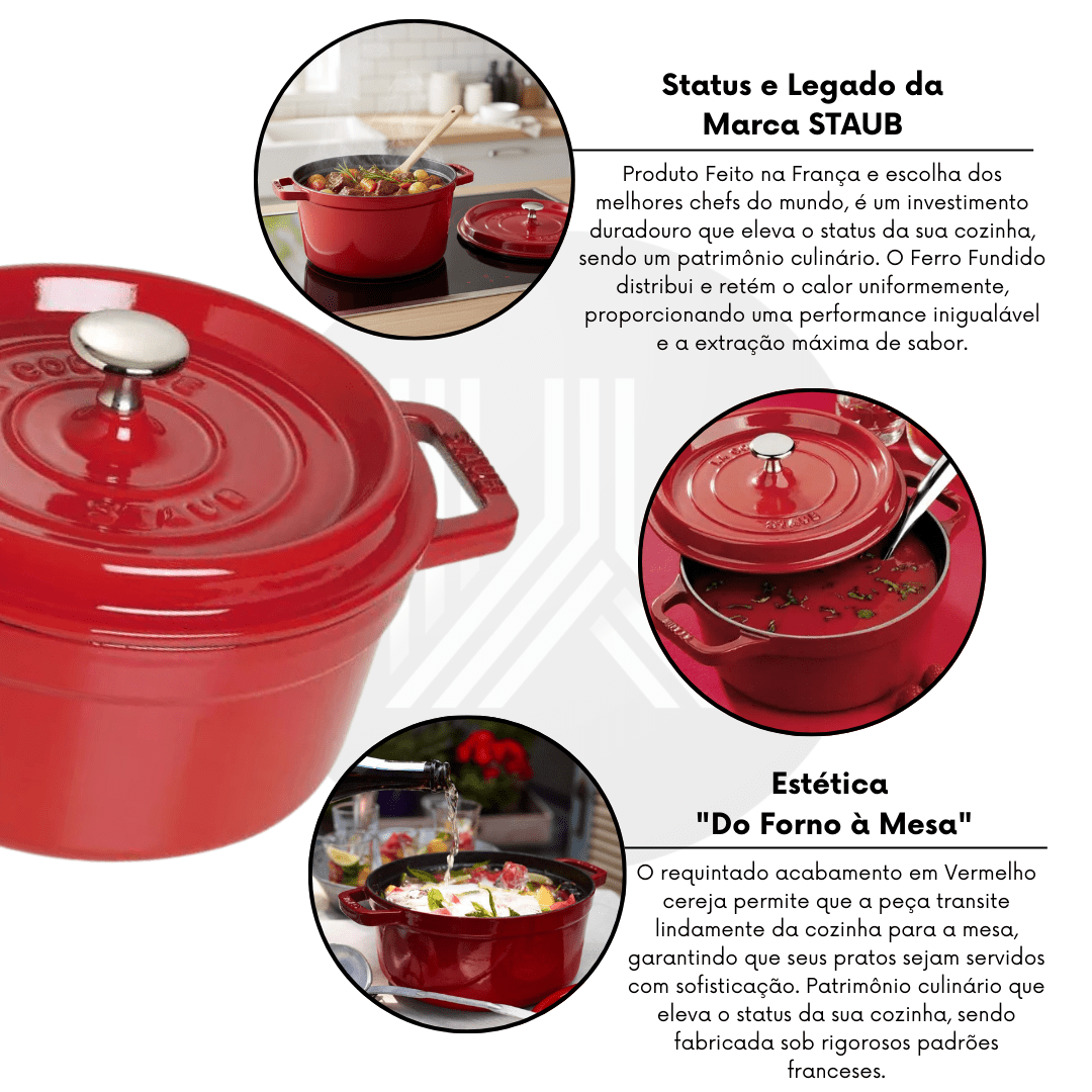 Status e Legado da Marca STAUB: Escolha dos melhores chefs do mundo, é um investimento duradouro e um patrimônio culinário que eleva o status da sua cozinha, sendo fabricada sob rigorosos padrões franceses.