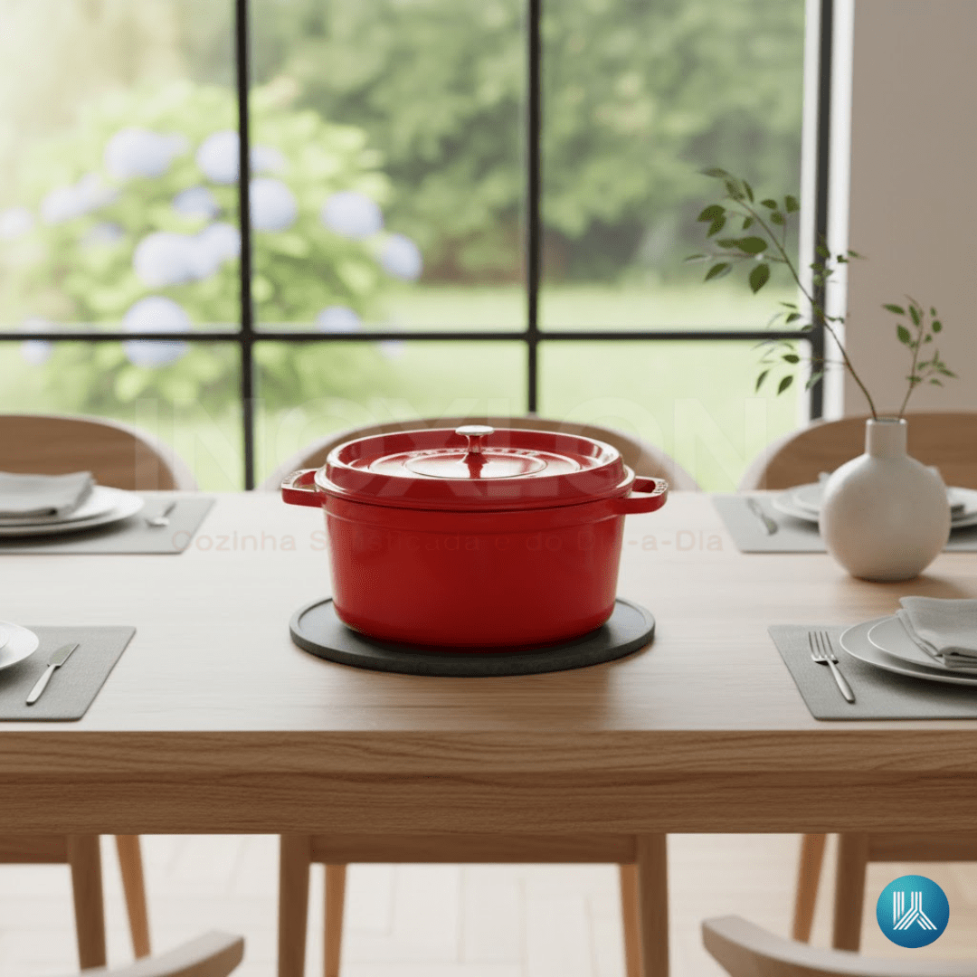 Design de Luxo (Serviço à Mesa): Com seu acabamento esmaltado brilhante, ela elimina a necessidade de travessas de servir. A panela é a própria apresentação, elevando a estética do jantar.