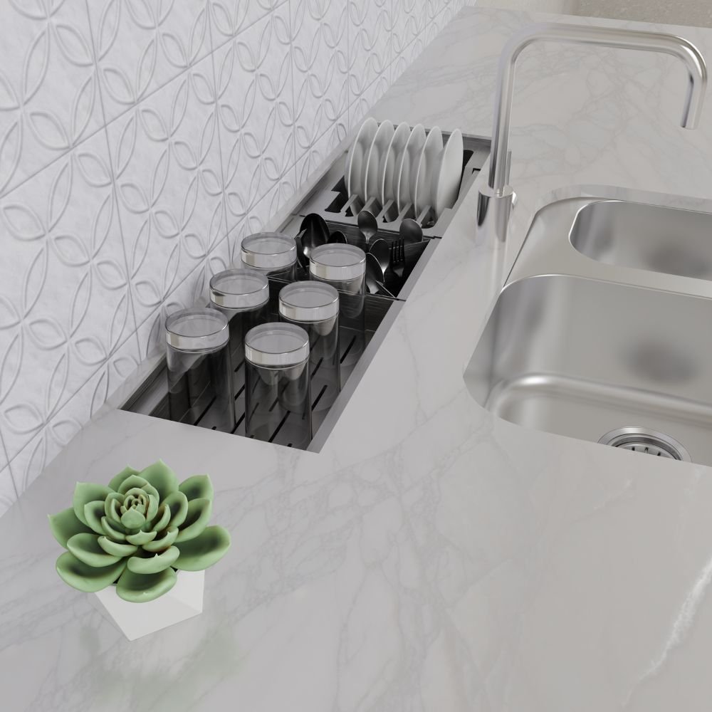 O canal organizador foi desenvolvido para otimizar o espaço da bancada, mantendo utensílios sempre acessíveis e de forma organizada. Com design funcional, ele reúne porta-pratos, escorredor profundo e porta-talheres em um só produto, garantindo mais praticidade e conforto no dia a dia. Sua estrutura compacta valoriza projetos de cozinhas planejadas, sem perder eficiência.