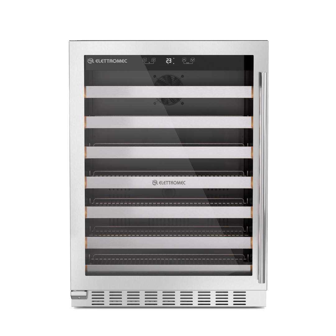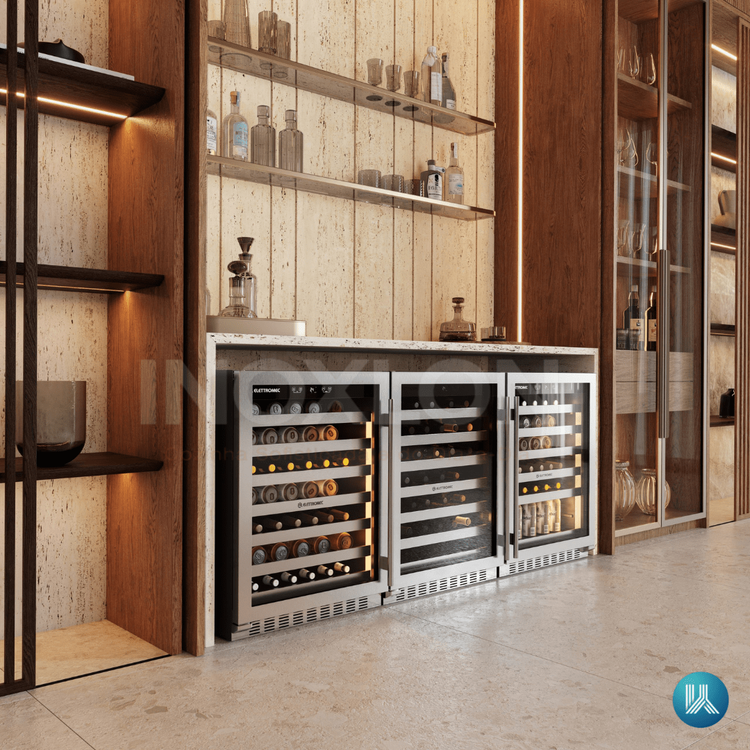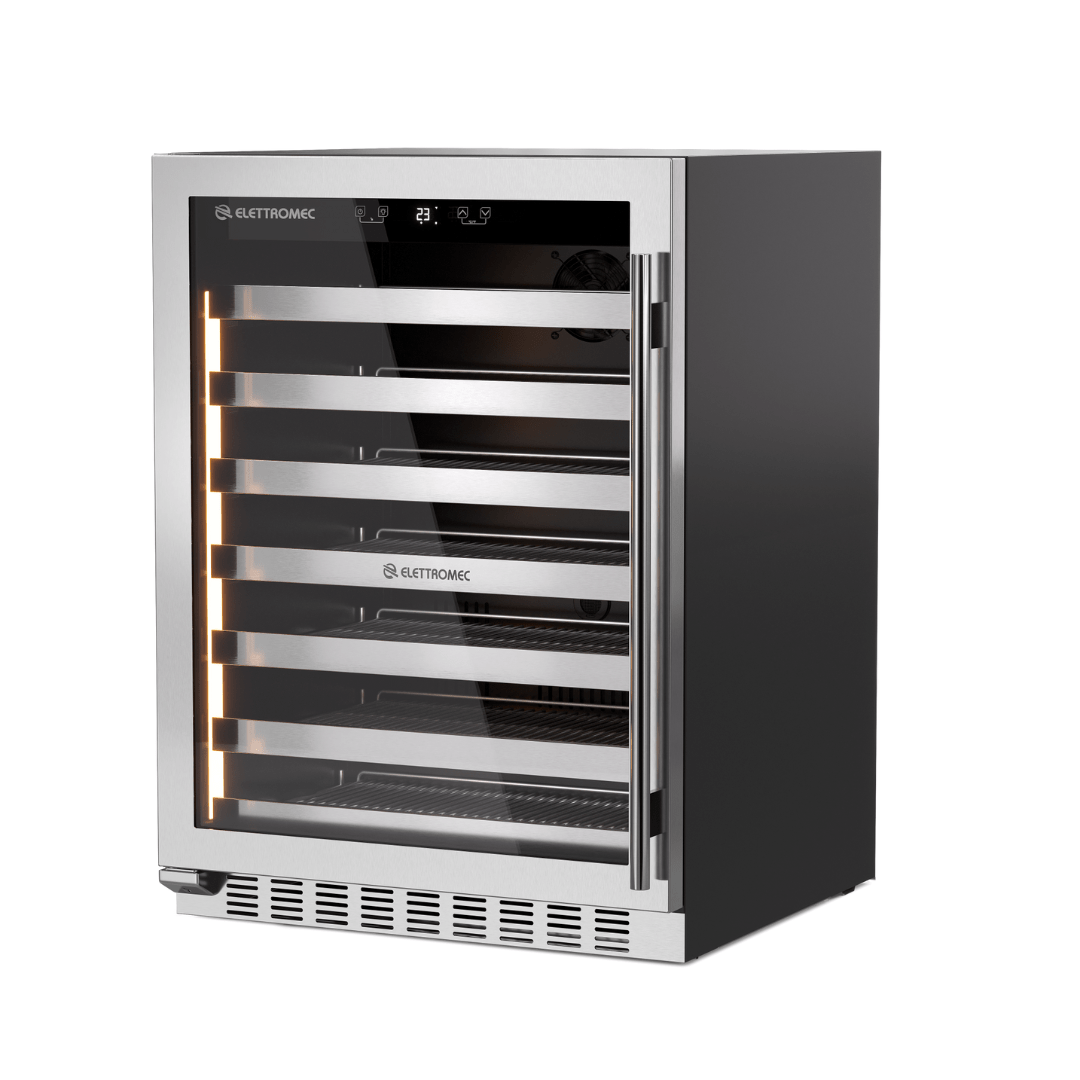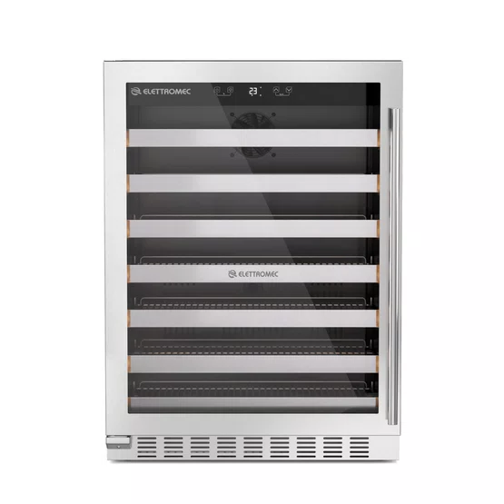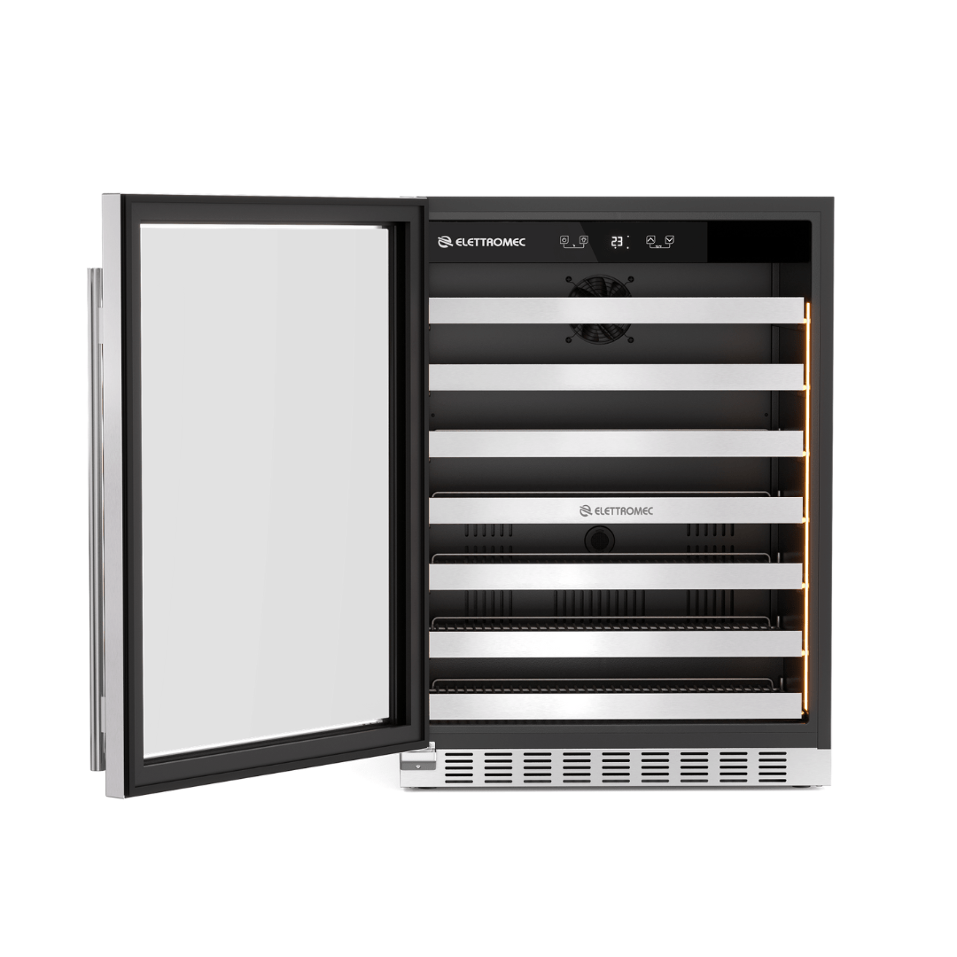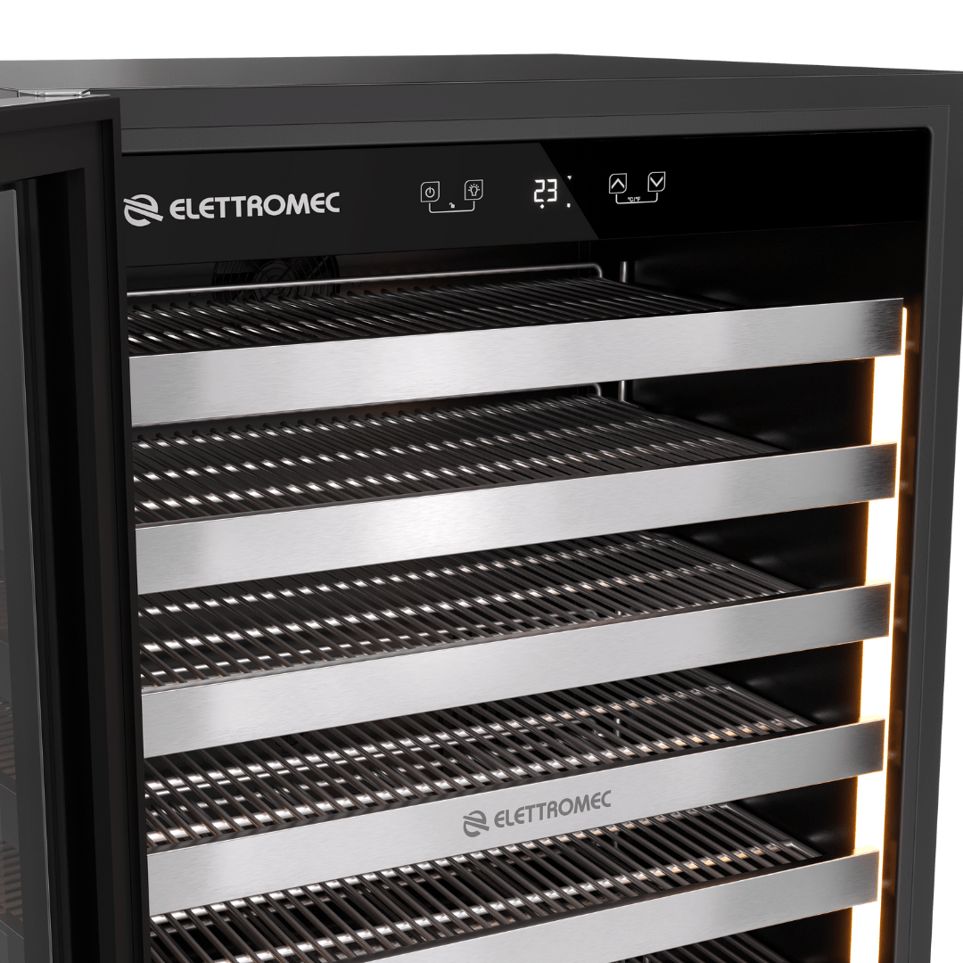 O Beer Center Elettromec Connect de 145 Litros é a solução definitiva em luxo e capacidade para grandes áreas gourmets. Com um espaço interno generoso, este modelo Built-in (de embutir) integra-se perfeitamente à marcenaria, oferecendo um visual imponente. Seu acabamento em Aço Inoxidável 304 (Inox Full Frame) e as prateleiras com frente em inox garantem durabilidade superior e uma estética premium, compondo o "Family Look" perfeito com outros equipamentos da marca. A performance é profissional: o Compressor Inverter garante silêncio absoluto, economia de energia e estabilidade térmica na faixa ideal de -5°C a 5°C, perfeita para todos os estilos de cerveja. A tecnologia é um destaque absoluto, permitindo controlar temperatura, umidade e a iluminação (LED Strip Lateral) diretamente pelo smartphone via aplicativo Elettromec Connect. Para garantir a preservação perfeita das suas cervejas especiais, o Beer Center conta com Vidro Triplo Low-e e tecnologia Heating Glass Duplo (anti-sudação), além de filtro de carvão ativado.