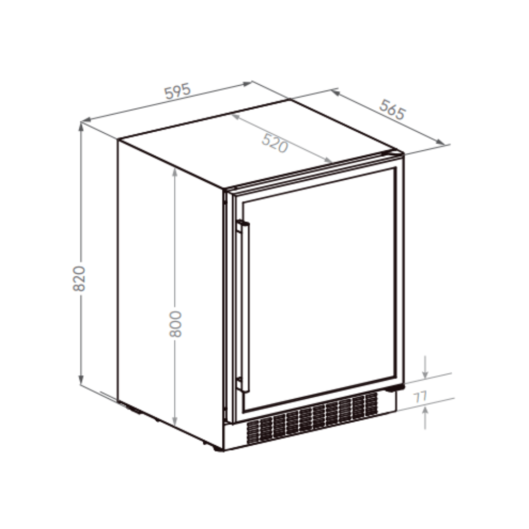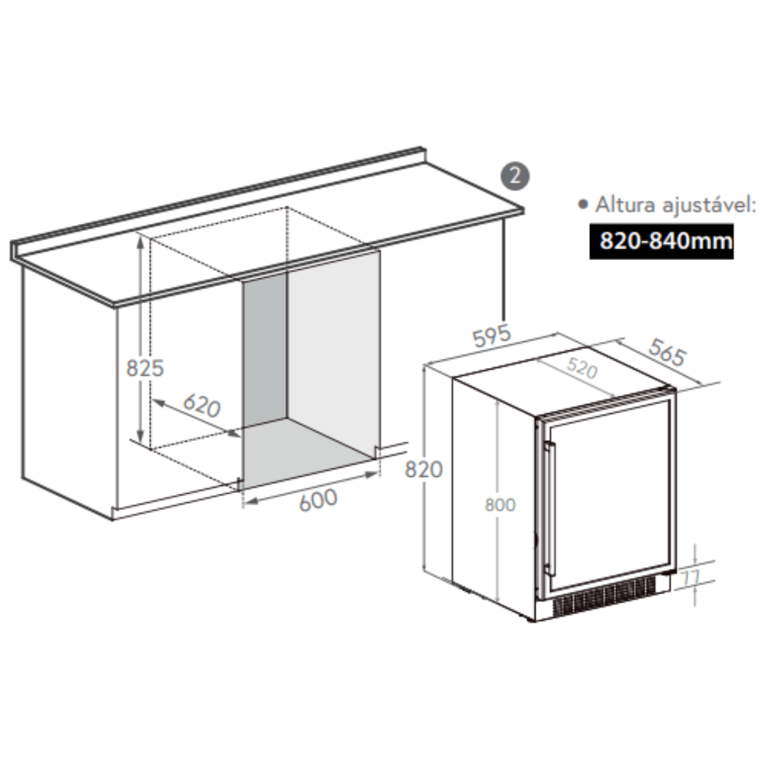 Para garantir uma instalação adequada, segura e com o acabamento sofisticado que o produto propõe, é fundamental observar as dimensões do nicho. O produto possui altura de 82 cm (com pés ajustáveis até 84 cm), mas a altura recomendada para a base do nicho é de 82,5 cm. É obrigatório considerar essa margem de folga de 5 mm na altura durante a confecção do móvel; ela é essencial para garantir a ventilação adequada do compressor e o encaixe perfeito do equipamento. Além disso, certifique-se de que o piso esteja nivelado e que o ponto de energia esteja posicionado preferencialmente fora do nicho ou com disjuntor dedicado de fácil acesso.