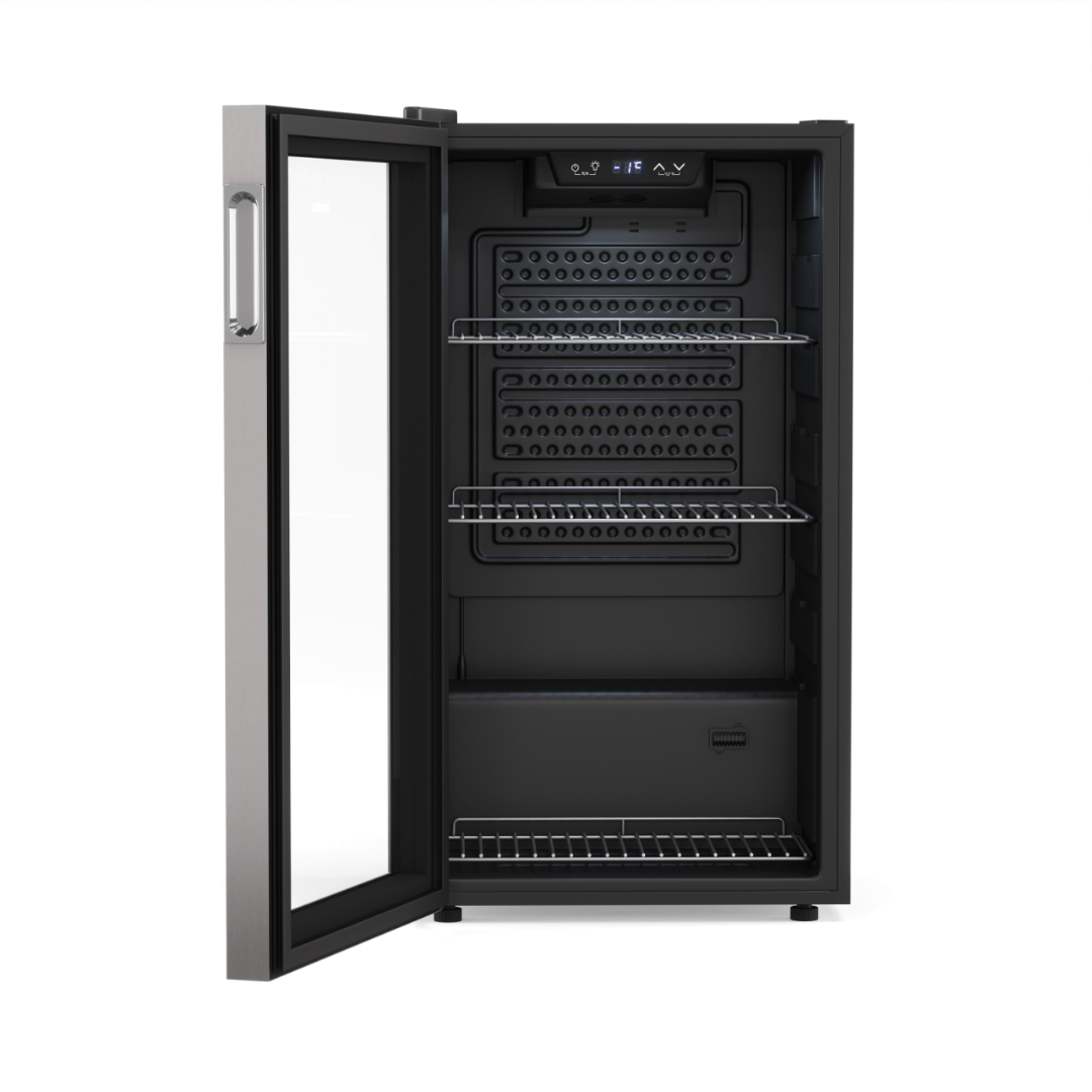 O Modelo Freestanding soluciona o problema da limitação de espaço, permitindo que o produto seja realocado de forma livre, ideal para a flexibilidade do seu projeto. A porta com acabamento em Aço Inoxidável possui a tecnologia Heating Glass, que reduz o acúmulo de umidade no vidro, garantindo uma visualização nítida dos rótulos.
