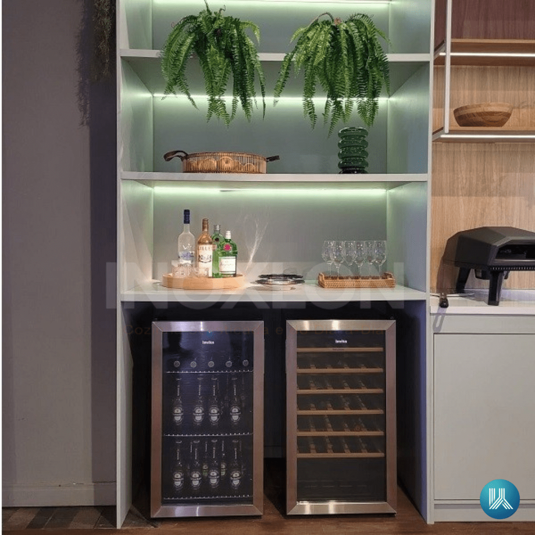 Capacidade e Flexibilidade (Freestanding): Com 85 litros (até 70 latas) e 3 prateleiras aramadas, o Modelo Freestanding oferece capacidade e flexibilidade de instalação para se adaptar livremente a qualquer projeto de área gourmet.