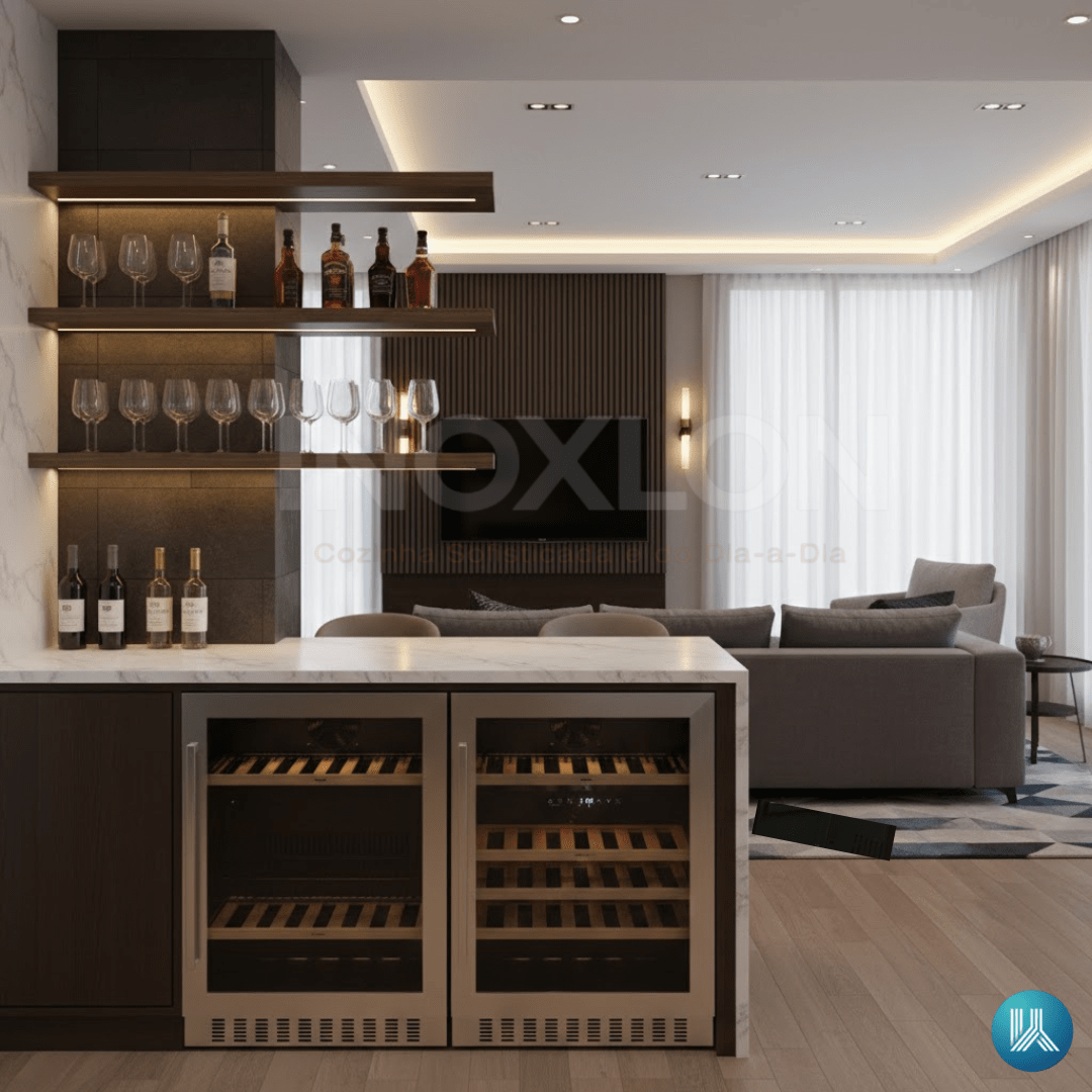Dicas de Cuidados e Manutenção: Para preservar a alta performance do Compressor Inverter e o brilho do aço inox 304, a manutenção deve ser cuidadosa. IMPORTANTE: Antes de higienizar, desconecte o produto da rede elétrica (220V). No acabamento em Aço Inox, utilize pano macio com detergente neutro, limpando sempre no sentido do escovado. Para a porta de vidro com tecnologia Heating Glass, use pano de microfibra levemente umedecido, evitando substâncias químicas abrasivas. As prateleiras ajustáveis com frente em madeira conferem um toque de luxo e devem ser limpas apenas com pano seco. ADVERTÊNCIA! Nunca utilize jatos de água no interior do gabinete para não comprometer os sensores do Display Touch e a vedação térmica.