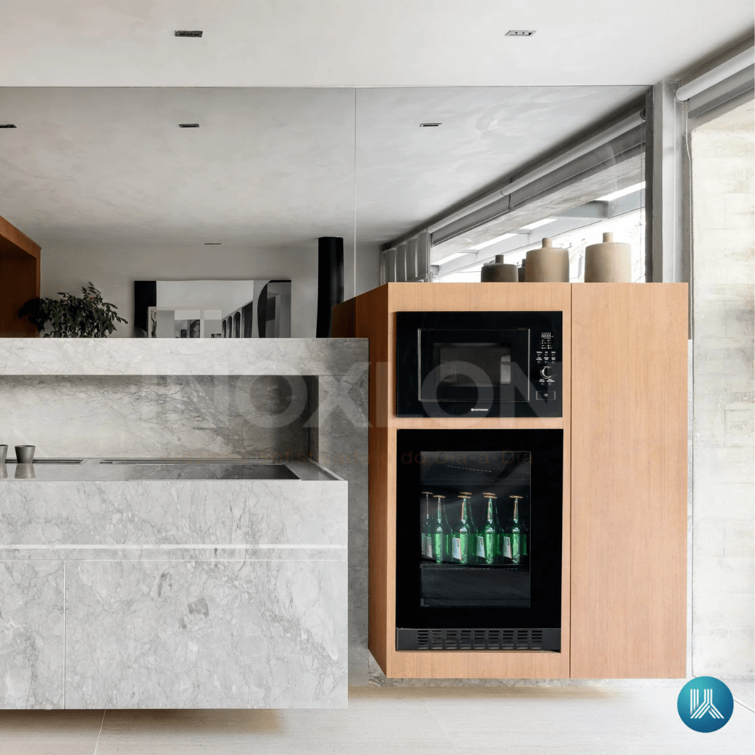 Capacidade Inteligente: Com 144 litros, otimiza o espaço armazenando um grande volume (184 latas) em um layout compacto e embutível.
