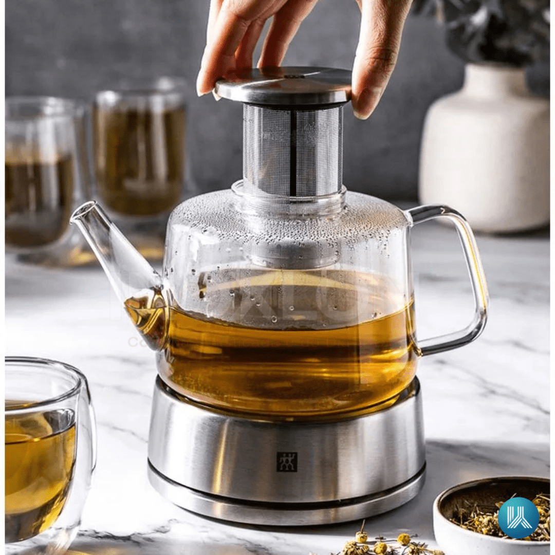 Esta chaleira é essencial para quem aprecia o chá favorito em grande estilo. O bule é fabricado em vidro de borossilicato, um material premium que soluciona o problema das mudanças bruscas de temperatura, oferecendo durabilidade e segurança. O design transparente permite que você aprecie a infusão do seu chá, elevando a experiência sensorial.