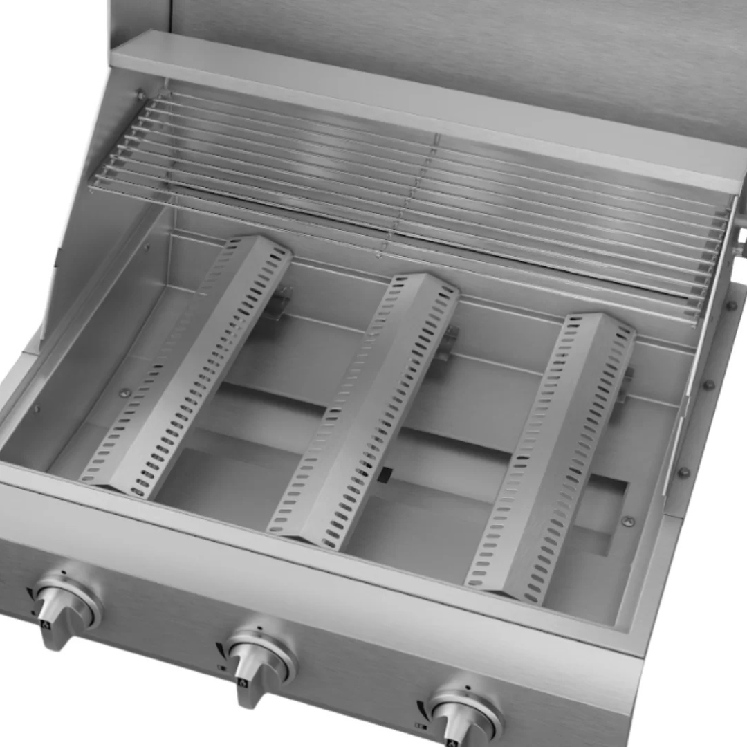Potência Semi-Profissional (45k BTUs): Com 3 queimadores potentes de 15.000 BTUs cada, este equipamento resolve a dificuldade de atingir altas temperaturas rapidamente, permitindo selar carnes com precisão de mestre churrasqueiro.