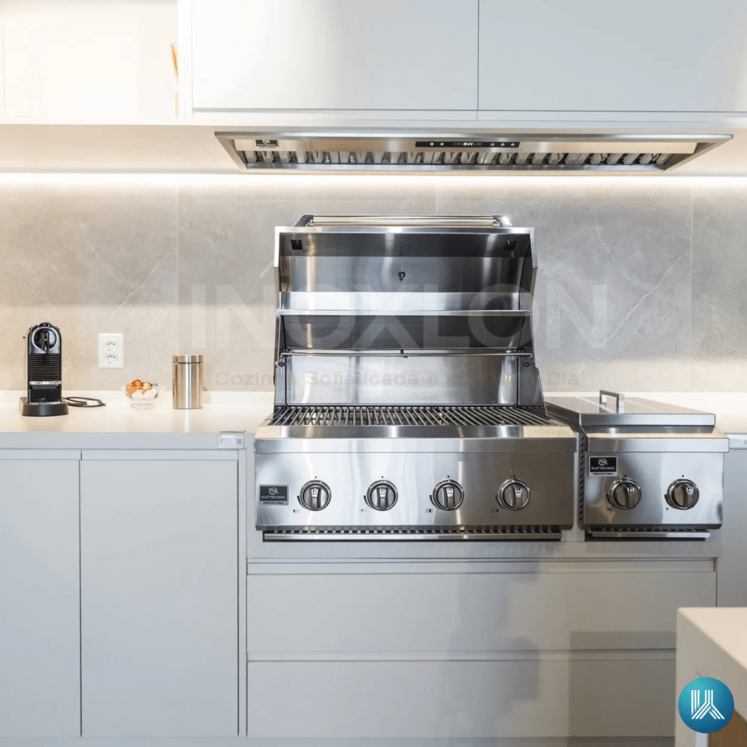Design Professional Built-in: Com manípulos ergonômicos e acabamento premium, este modelo soluciona a estética da sua área gourmet, permitindo composições harmônicas com coifas e dominós da mesma linha.