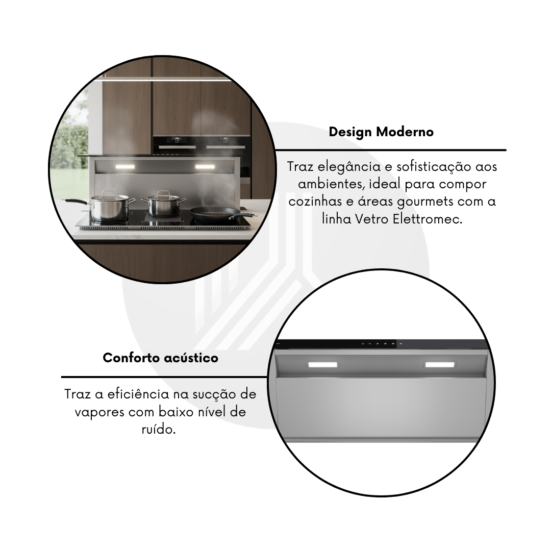 A coifa de embutir Downdraft Sollevare da Elettromec é um equipamento de alta performance e exclusividade. Este modelo fica totalmente embutido e escondido bancada e pode ser instalada no modo depurador ou exaustor, tendo um excelente desempenho na extração de odores e gorduras da cozinha! Além disso, essa opção de coifa é uma ótima solução para cozinhas com pé direito alto, pois não tem necessidade de ser fixada no teto.