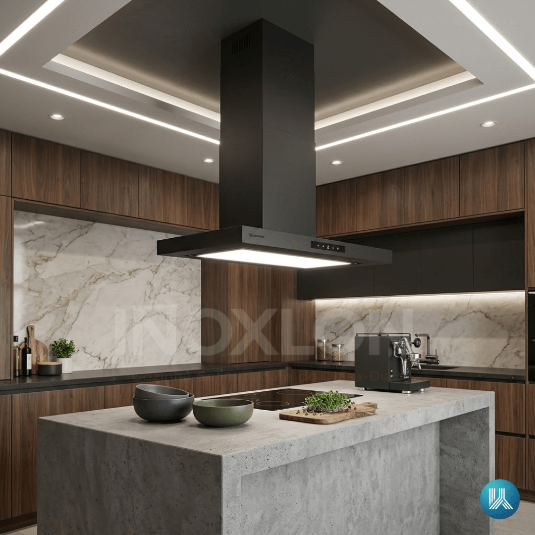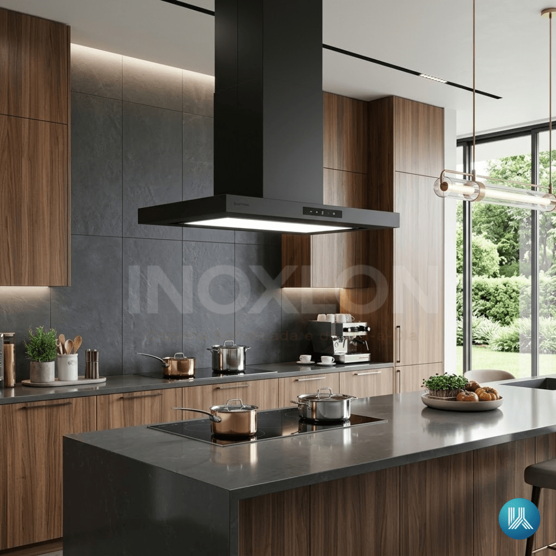 Vazão de Alta Performance (1200 m³/h): Este diferencial resolve a busca por renovação total do ar, sendo ideal para cozinhas de ilha em projetos de luxo que exigem máxima eficiência.