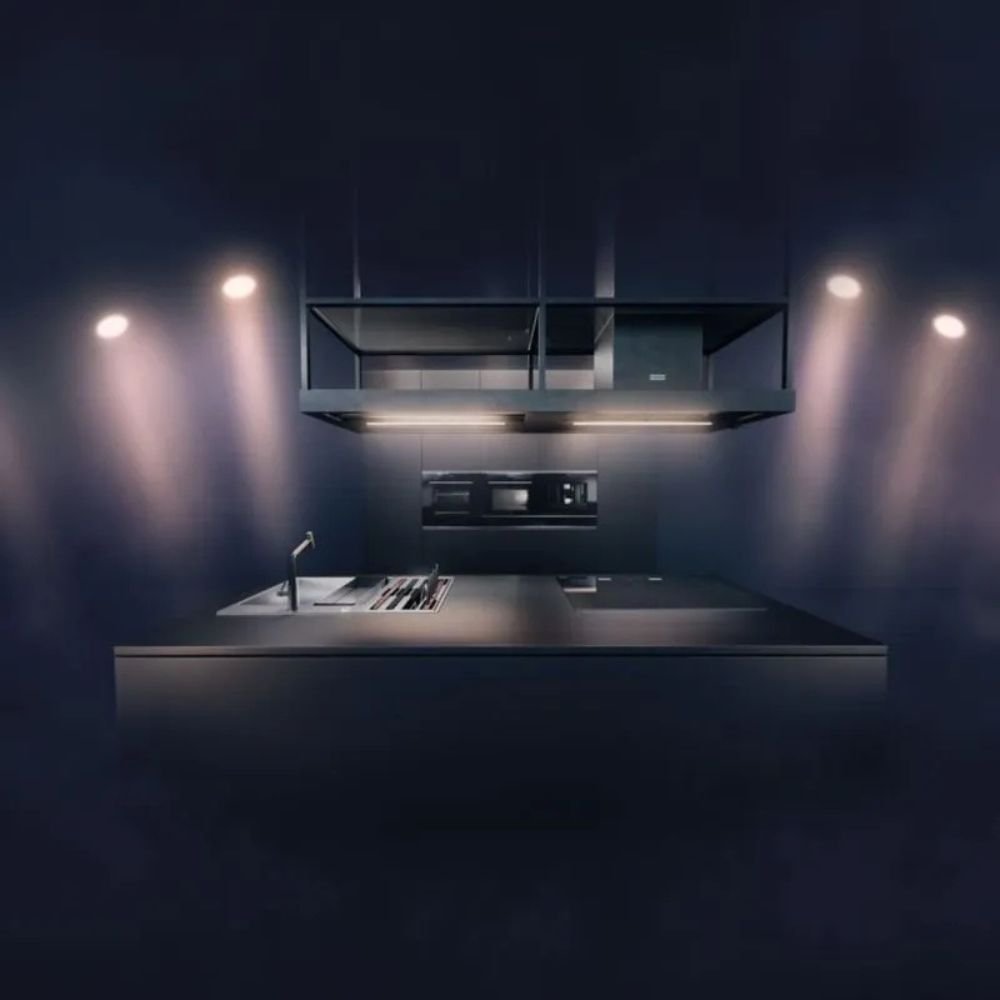 O acabamento é elegante e atemporal, garantindo que a coifa se integre com estilo em cozinhas modernas. Além disso, a coifa possui o sistema de extração perimetral e iluminação LED, que contribui para criar a atmosfera perfeita enquanto garante a limpeza eficaz do ar.