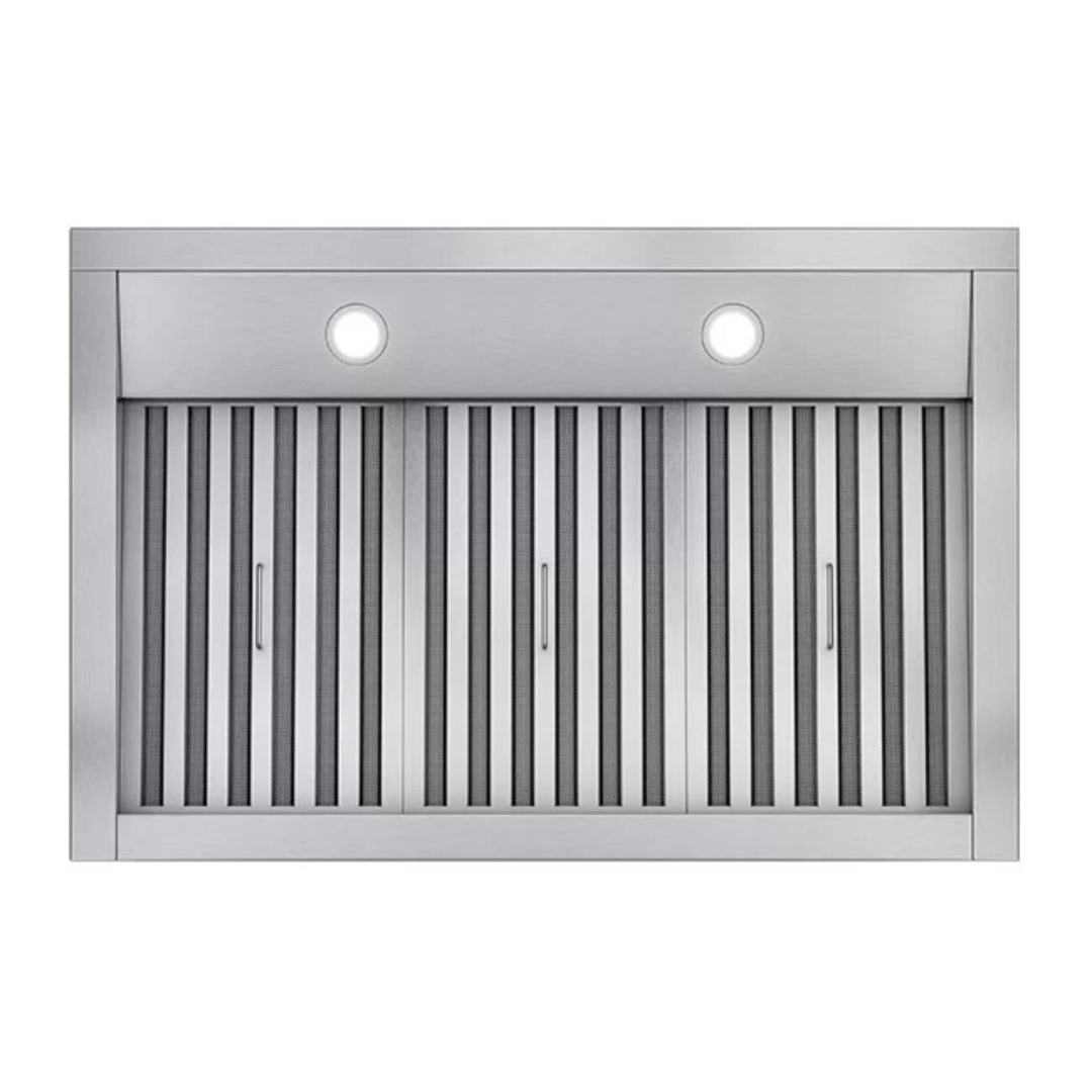 Filtros Baffle Profissionais: O sistema de filtragem em aço inox soluciona a retenção de gordura pesada. Diferente dos filtros comuns, o design Baffle melhora o fluxo de ar e é altamente resistente a chamas e altas temperaturas.