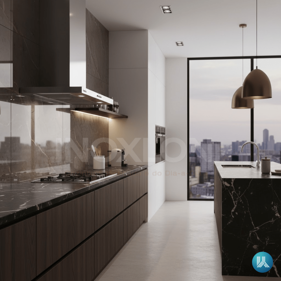 Design e Durabilidade: O Acabamento em Aço Inoxidável confere elegância, durabilidade e facilita a limpeza, sendo um diferencial de status para sua área gourmet.