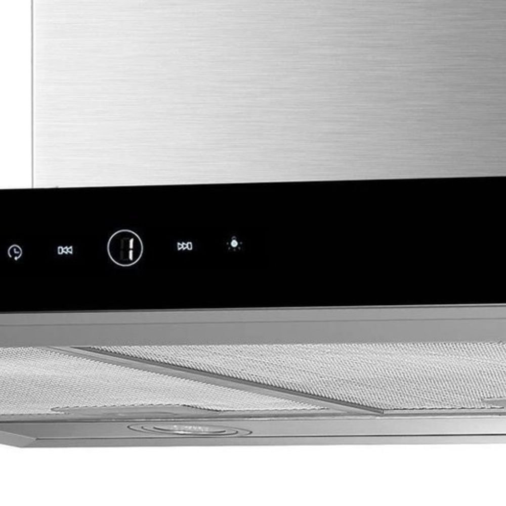 A Coifa de Parede Linea Touch Franke 90cm é a solução ideal para cozinhas que demandam maior cobertura e eficiência, sendo perfeitamente dimensionada para cooktops ou fogões de cinco ou seis queimadores. Esta coifa combina beleza, praticidade e alta funcionalidade. O acabamento sofisticado une a durabilidade do Inox ao Vidro Temperado Preto na sua parte frontal, enquanto o painel touch em LED branco oferece um controle intuitivo. Com uma extração eficiente de 550 m³/h, ela pode ser instalada de forma flexível como depurador ou exaustor, atendendo a todas as necessidades de ventilação.