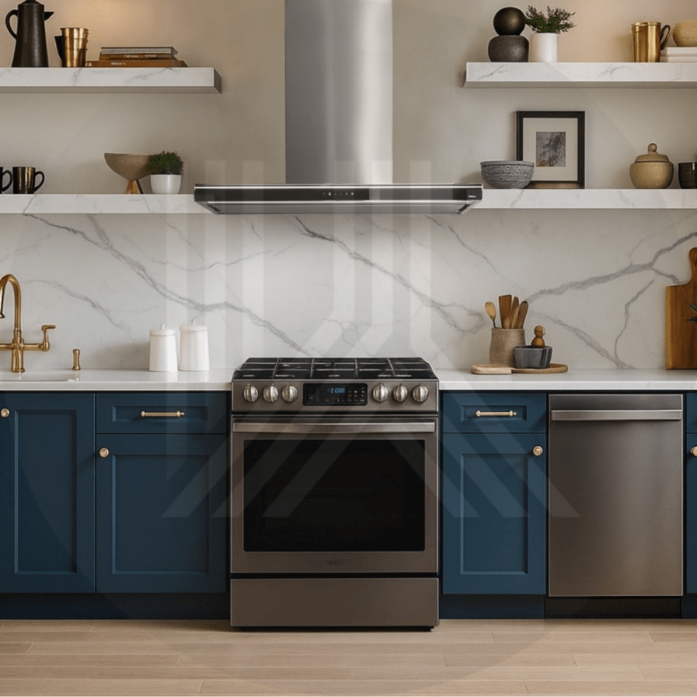 Acabamento Premium: Fabricada em aço inoxidável 304 com detalhes em vidro temperado preto, oferece resistência, elegância e integração total com cozinhas planejadas;