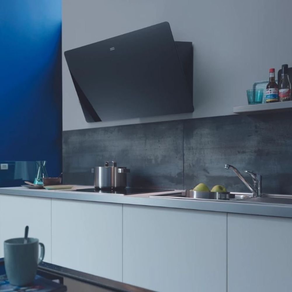 A Coifa de Parede Evo Black Franke é a expressão máxima de charme e modernidade, destacando-se por seus traços minimalistas e acabamento em Vidro Preto. Com 90 cm de largura, ela oferece alta performance de sucção com 710 m³/h (IEC) e se encaixa em qualquer estilo de cozinha, do clássico ao contemporâneo, devido à sua cor marcante e elegante. O acionamento touch e a extração perimetral de maior eficiência garantem um uso agradável e resultados de purificação superior.