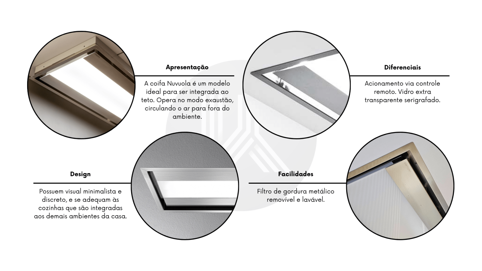 Aspiração Perimetral: Sistema que concentra a sucção nas bordas da coifa, melhorando o desempenho e reduzindo o ruído;