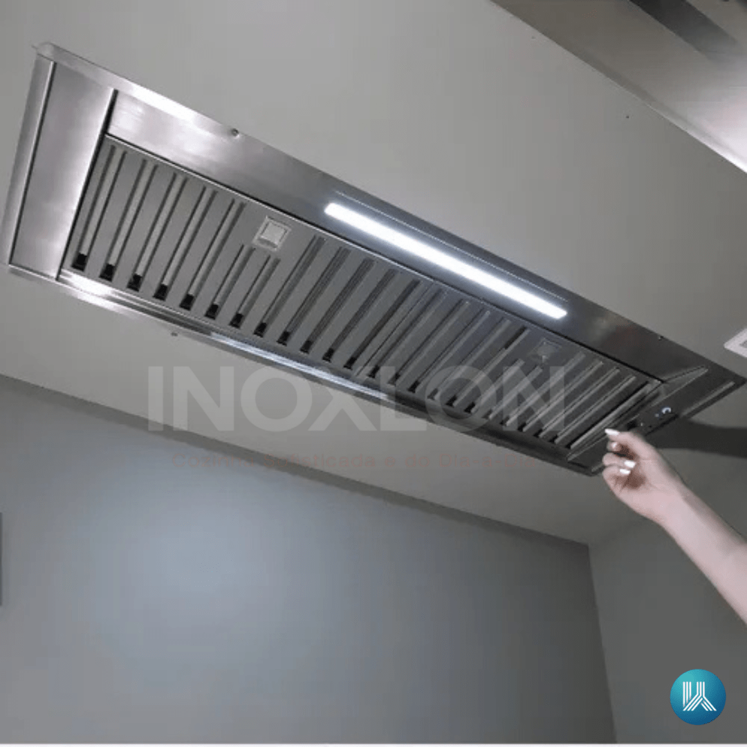 O grande diferencial é o Acabamento em Inox 304, que confere durabilidade e qualidade superior ao produto, resistente à corrosão e ao uso diário. A Vazão poderosa de 1.200 m³/h garante uma sucção eficiente, operando tanto no modo Exaustão (com saída externa) quanto no modo Depuração (com filtros de carvão, vendidos separadamente).