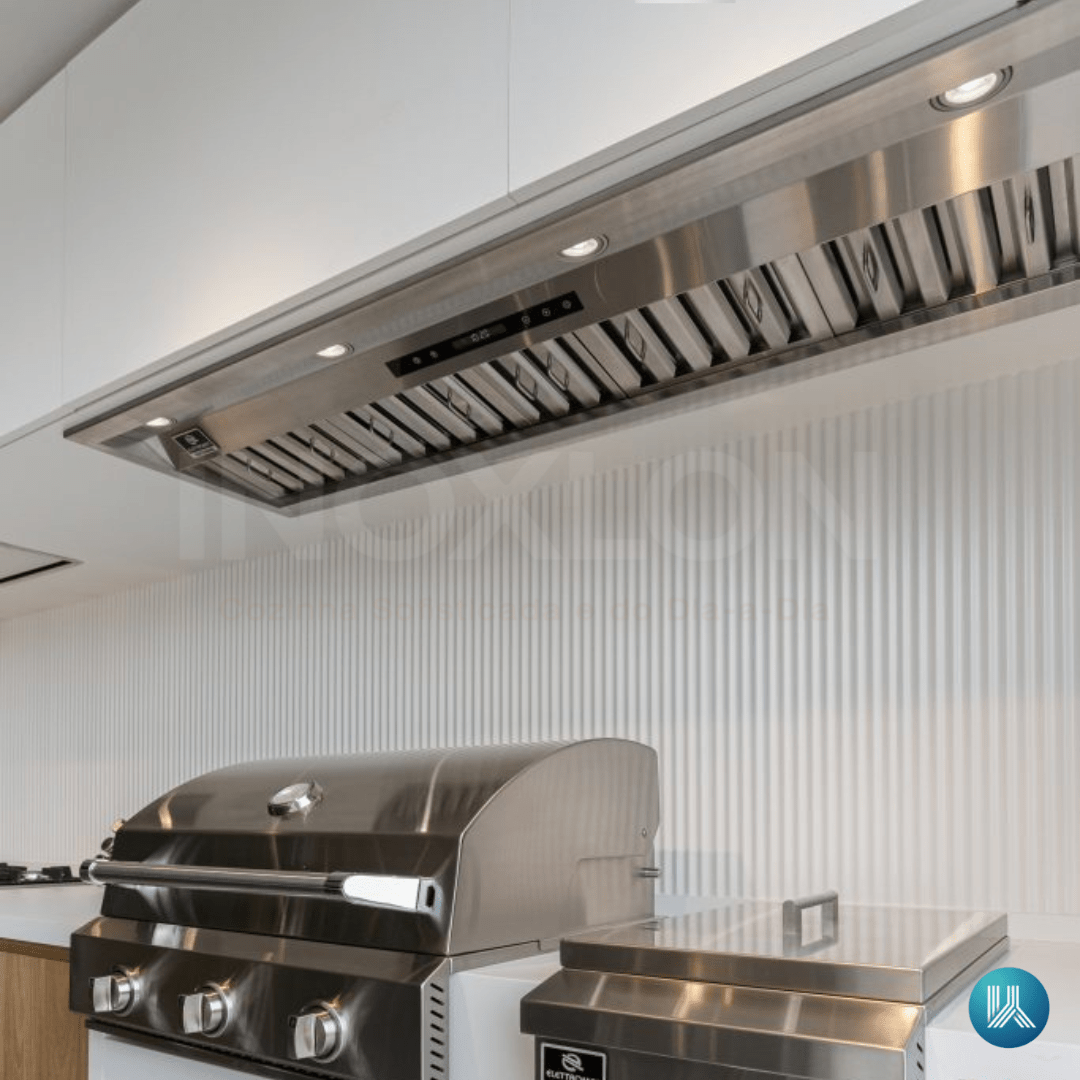 A Coifa de Embutir Professional Churrasqueira Elettromec é a solução definitiva para áreas gourmet de alta performance, com 58 Polegadas (145 cm). Projetada para instalação embutida (built-in), seu acabamento em Aço Inoxidável 304 permite a combinação perfeita com os outros equipamentos da linha Professional, garantindo a máxima durabilidade contra o calor intenso. Equipada com motor duplo, seu diferencial é a altíssima potência de sucção de 3.000 m³/h, operando exclusivamente no modo Exaustor (retirando o ar sujo do ambiente) para lidar com a fumaça pesada do churrasco.