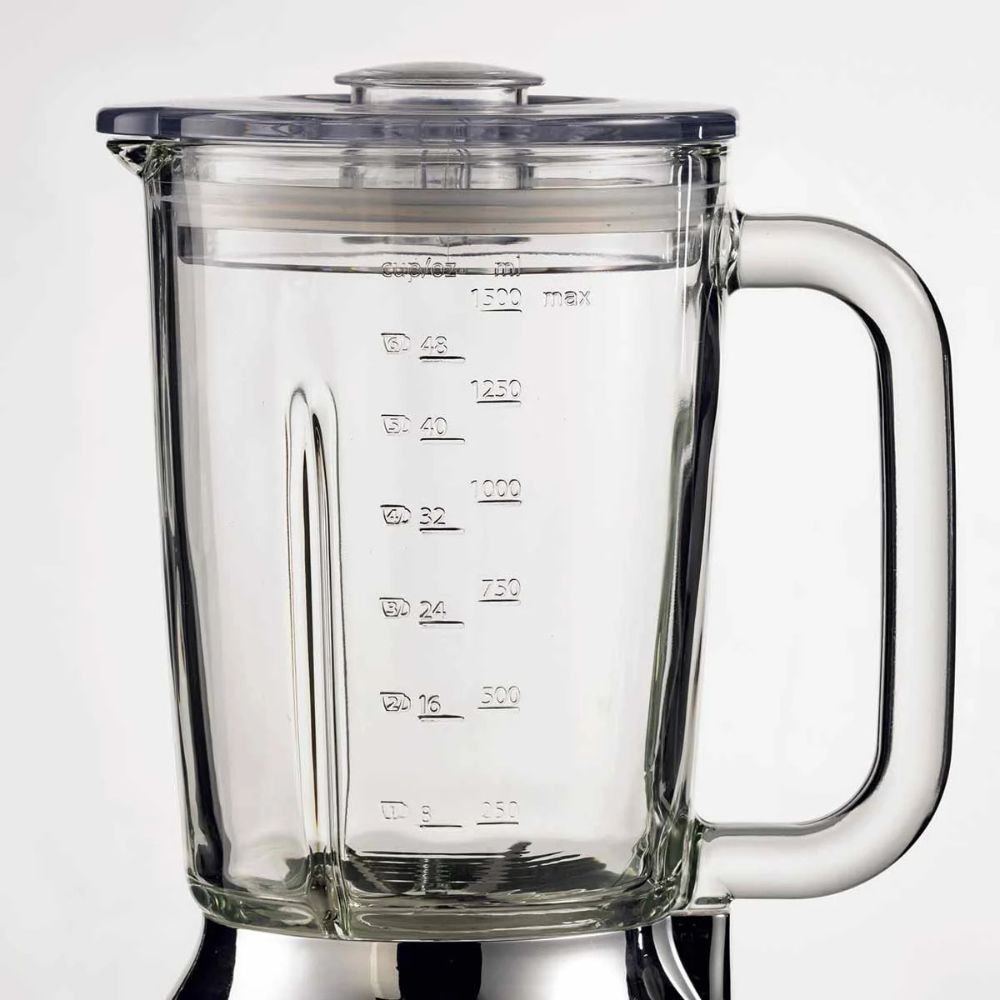 Higiene e Tecnologia de Luxo: A jarra de vidro de 1,5L resolve a preocupação com odores e manchas. Com 4 lâminas de inox, soluciona o preparo de smoothies e trituração de gelo com agilidade premium.