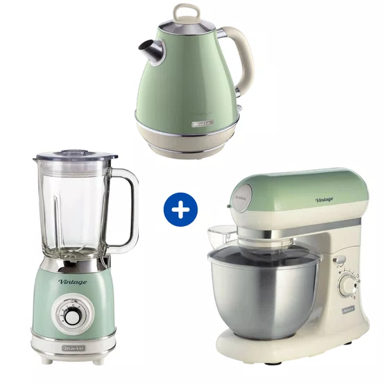 O Combo Ariete Vintage Verde é a expressão máxima do requinte retrô para residências de alto padrão. Composto por três ícones do design italiano — a Batedeira Planetária, a Chaleira Elétrica e o Liquidificador — este conjunto soluciona a necessidade de equipamentos potentes que também funcionam como peças centrais de decoração. Com acabamento em verde pastel e detalhes cromados de luxo, cada item foi projetado para entregar uma experiência premium, desde a fervura ultrarrápida da água até a sova de massas pesadas com precisão profissional. É um investimento de luxo para quem valoriza a tradição europeia sem abrir mão da eficiência contemporânea.