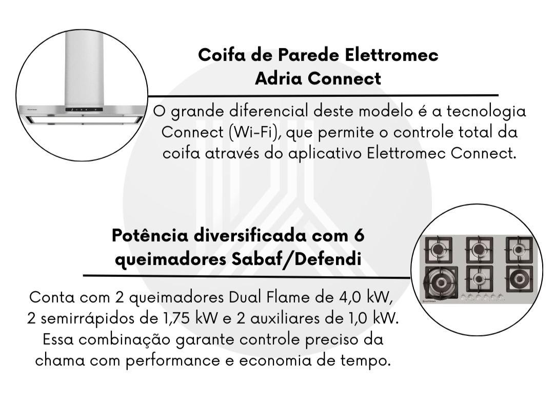 A Elettromec é sinônimo de excelência no mercado de eletrodomésticos de luxo, e este combo foi projetado para quem deseja transformar a ilha central da cozinha em um verdadeiro palco gastronômico. Adquirir a Cozinha Elettromec Completa através de um combo é a decisão mais estratégica para garantir uma estética uniforme e sofisticada, onde o aço inox escovado e o design minimalista italiano conversam entre si, elevando o valor e o status do seu imóvel. Este kit soluciona o desafio de equipar uma ilha com máxima performance, unindo a inteligência da Coifa Adria Connect com Wi-Fi, a amplitude inigualável do Cooktop Quadratto de 6 Queimadores e a precisão da Torre Quente Luce. É um investimento duradouro que proporciona a praticidade de uma entrega única e a garantia de compatibilidade tecnológica total, transformando sua rotina em uma experiência de luxo sem complicações.