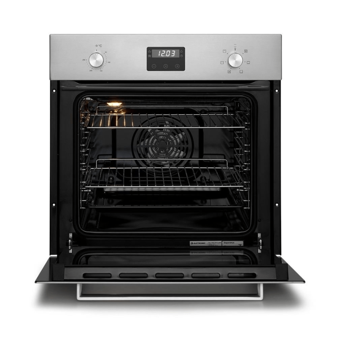 Desempenho Profissional em Inox: Com grande capacidade interna e acabamento premium, este forno une sofisticação e praticidade, sendo um investimento duradouro para quem busca cozinhar com máxima qualidade.