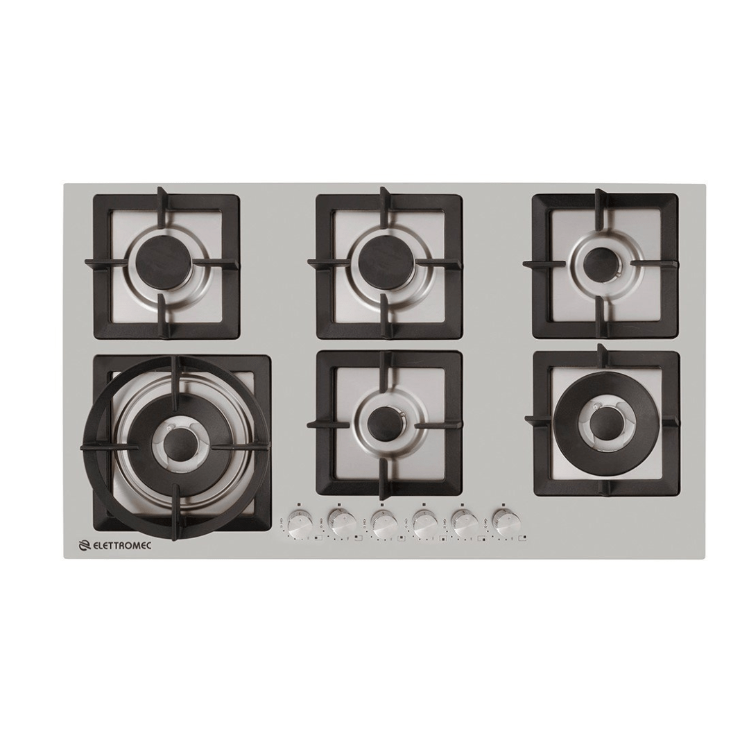 Espaço Generoso e 6 Queimadores: Com uma área útil superior, este cooktop soluciona o problema de espaço ao administrar grandes panelas e processos simultâneos, sendo ideal para quem exige eficiência em ambientes gourmets.